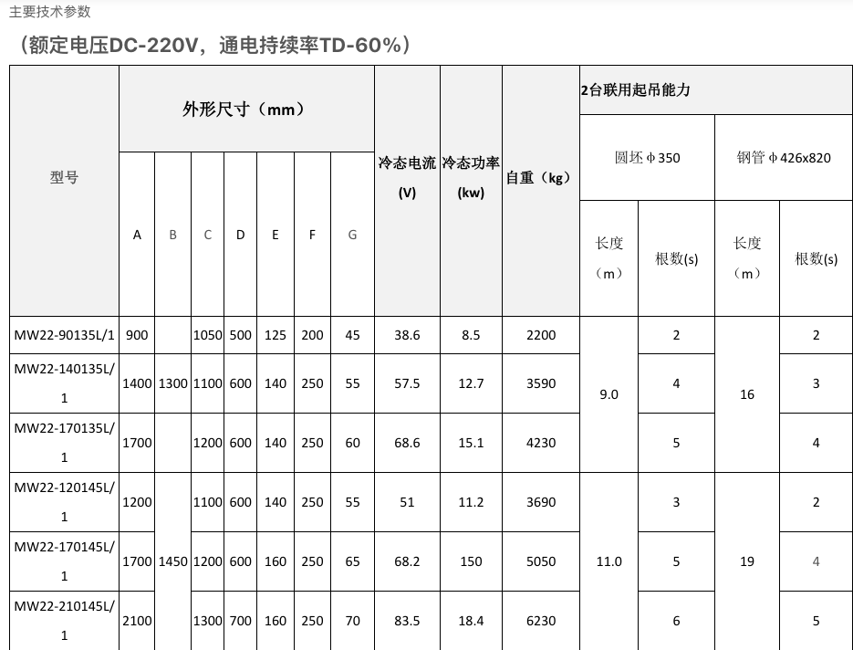 Primarily suited for lifting round billets, steel pipes, and can also be used for lifting square billets, ingots, large bloom steel, and profile steel. Features a special magnetic circuit design with deep magnetic penetration.