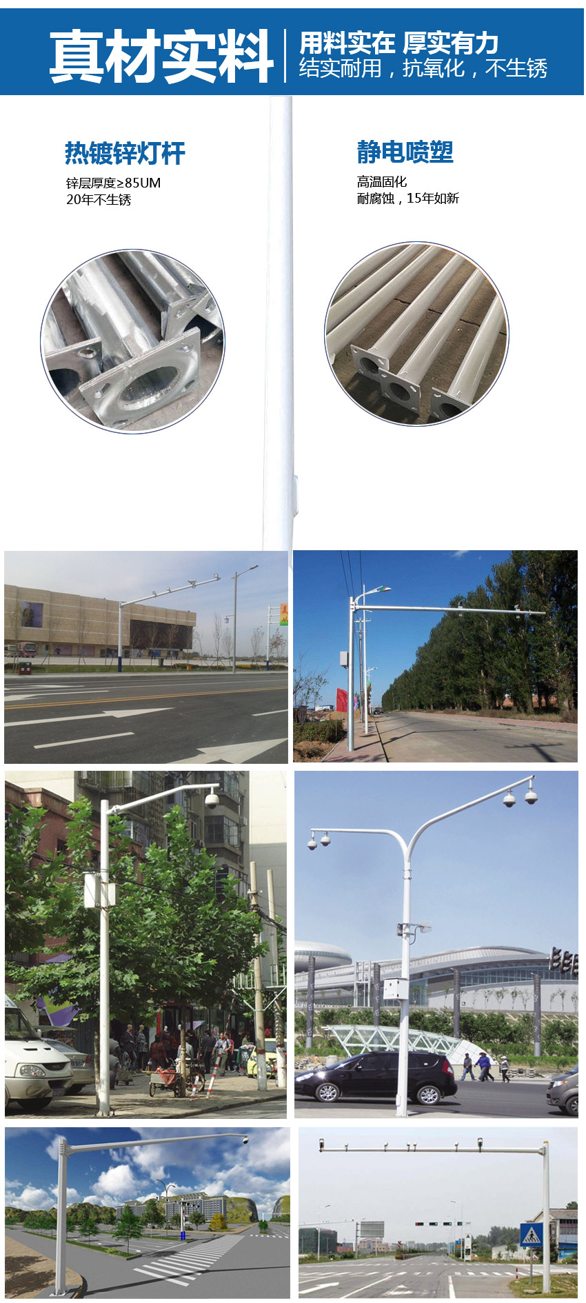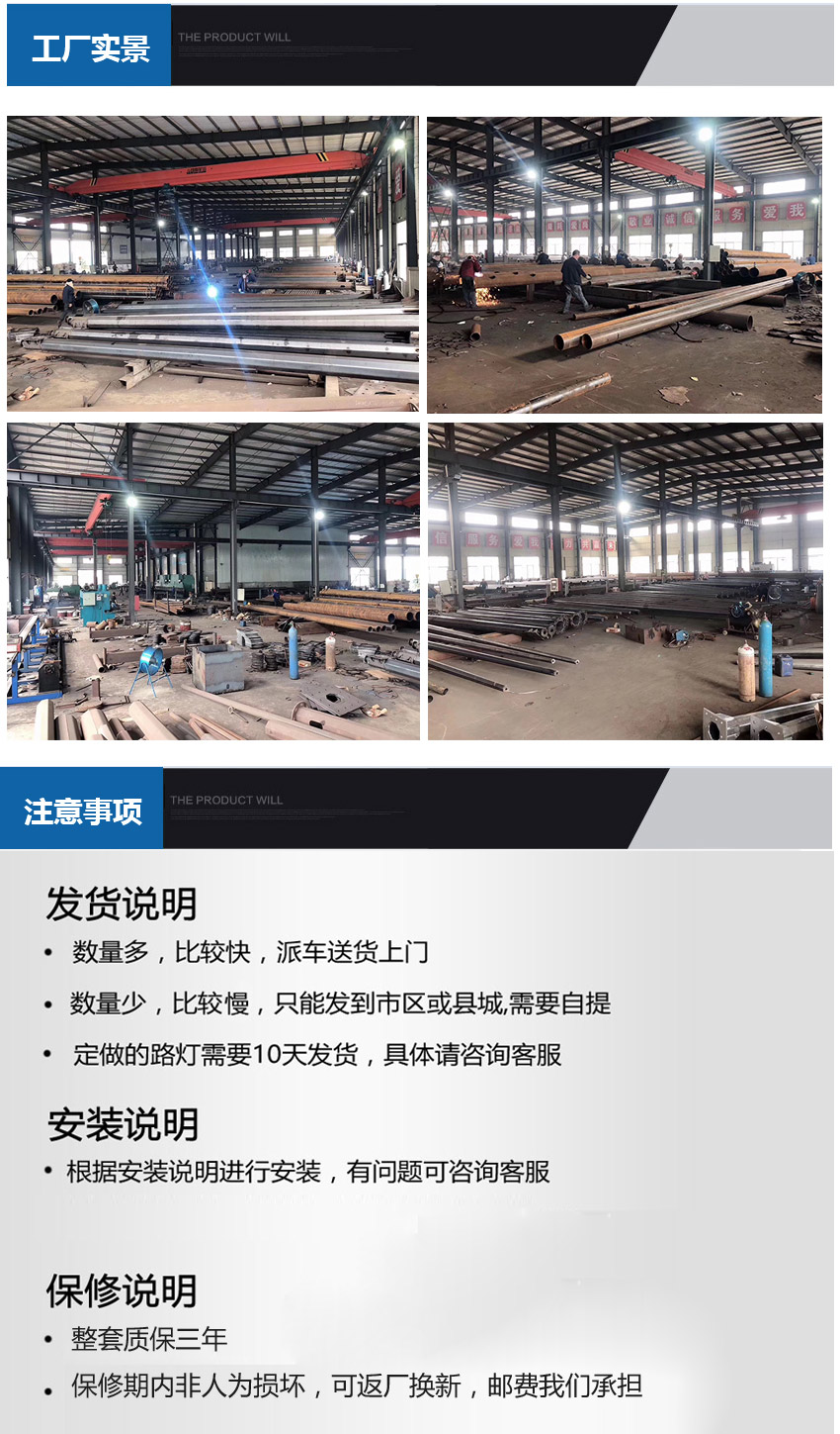 | Surface Treatment | The rod body is hot-dipped galvanized, rust-free for 20 years (the surface can be spray-painted, and the color and rod type can be designed according to requirements). | |