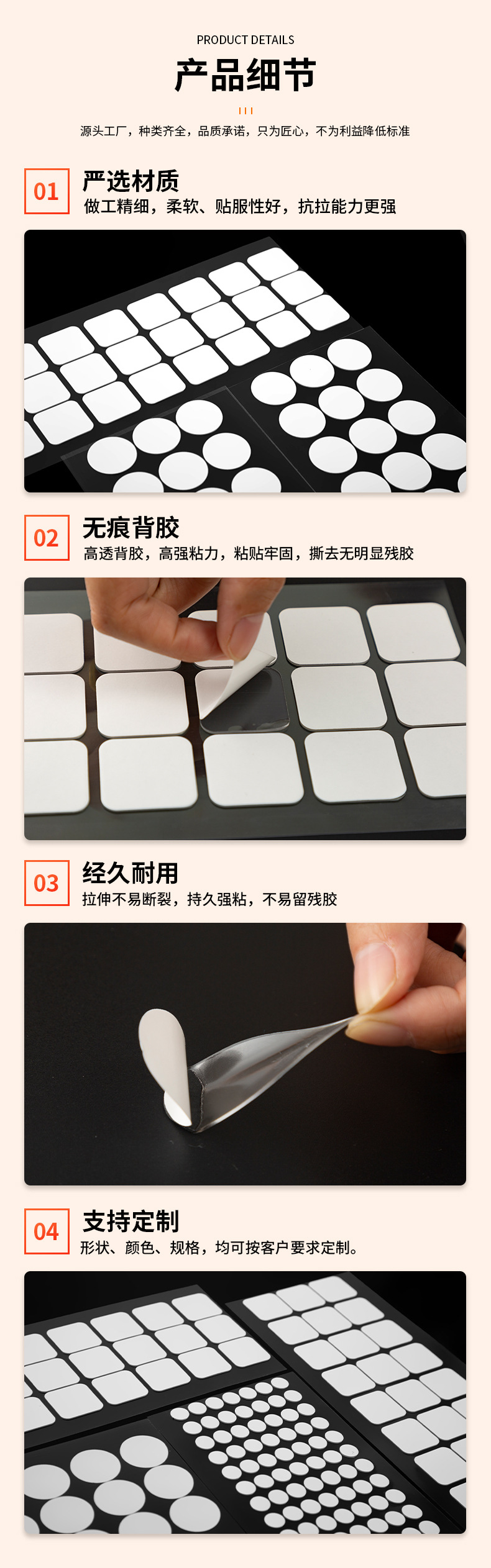 | Features | Tape with No Trace, High Adhesion | |