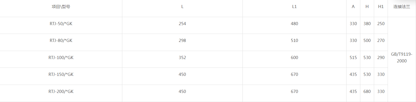 Bore: DN50, DN80, DN100, DN150, DN200