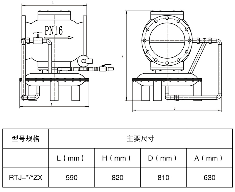 The RTJ-*/*ZX type pressure regulator is an indirect-acting regulator, consisting of a diaphragm, actuator, and valve body. The regulator's diaphragm divides the control valve into two chambers. One chamber is connected to the downstream outlet pressure (P2), while the other chamber is connected to the load pressure (P3) adjusted by the actuator based on the outlet pressure. Due to the insufficient pressure difference between the load pressure (P3) and the outlet pressure (P2), the main valve spring exerts force on the diaphragm, pushing the valve towards the closed position. As the load pressure (P3) on one side of the diaphragm gradually becomes greater than the sum of the spring and outlet pressure, the valve opens. When the pressures on both sides are balanced, the valve remains open, and the adjusted pressure is the system's set outlet pressure. Changes in the required gas flow will alter the outlet pressure. The valve opens or closes under the control of the load pressure (P3) regulated by the actuator to deliver the required gas flow, thereby ensuring the stability of the outlet pressure.