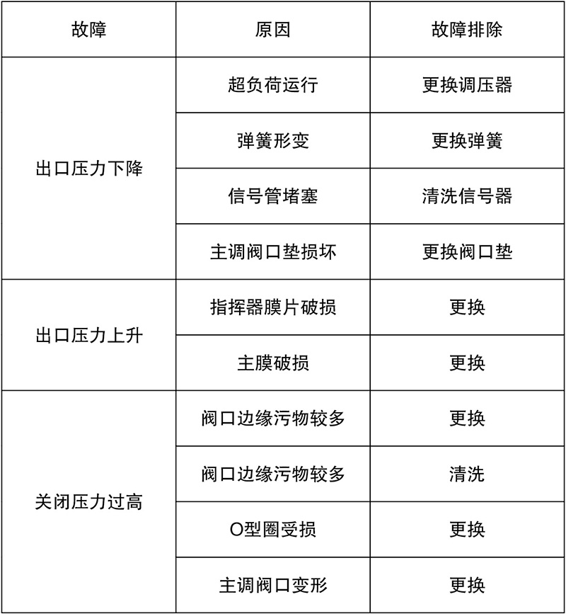 Based on the degree of purification of the gas quality, schedule maintenance every 3-6 months to remove dirt, with particular attention to cleaning the valve openings. Timely replacement of seals, diaphragms, O-rings, and other components is required; after maintenance, ensure all parts are intact and assembled correctly, ensuring smooth operation and clear signaling lines. After maintenance and installation, use soap water to check for any leaks in all connected sealing points. Reset the inlet and outlet pressures after the maintenance.