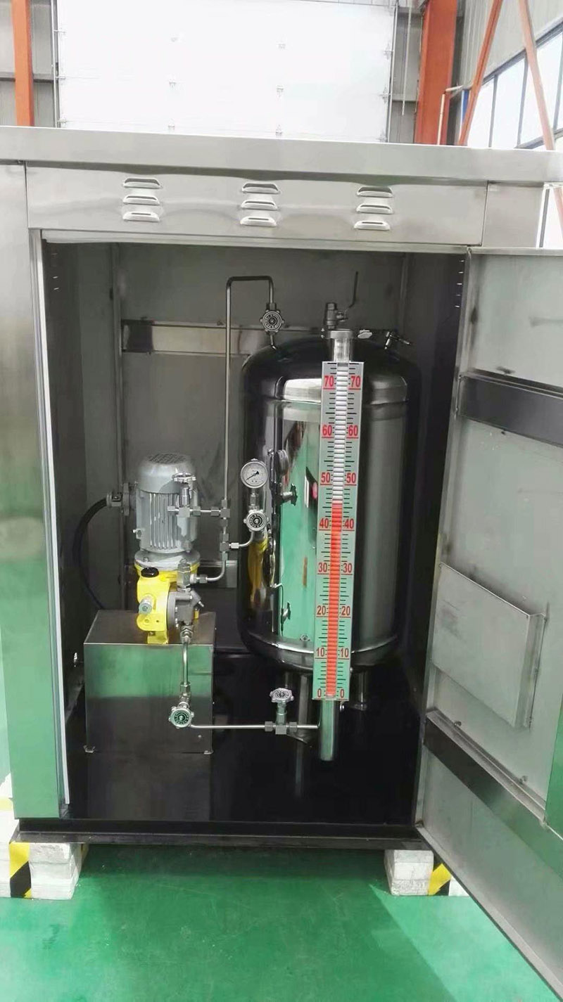 Equipped with a diaphragm plunger dosing pump, the working pressure output is 1.73 Mpa. The single stroke odor output of the dosing pump is adjustable within the range of 20-400mg per cycle, suitable for a wide range of gas flow rates; it can meet the gas dosing operation requirements for a maximum gas flow rate of 110,000 m³/h.