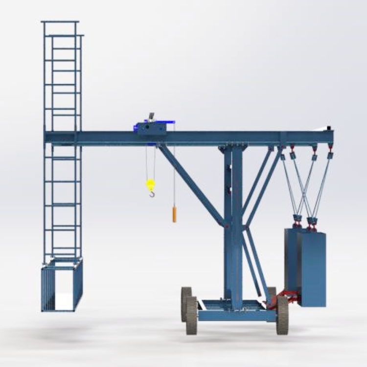 Collision wall template construction trolley, a bridge maintenance operation platform that provides a working platform for bridge inspectors during inspections, used for mobile inspection and maintenance operations. Generally, it is used for the installation of bridge drainage pipes, cables, and light tubes, as well as for the construction of bridge anti-corrosion painting.