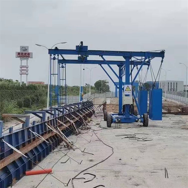 One, the collision wall formwork trolley is a combination of an electric hoist lifting and a side operation basket platform, used for the lifting, transportation, installation, and dismantling of collision wall forms on highway bridge structures.
