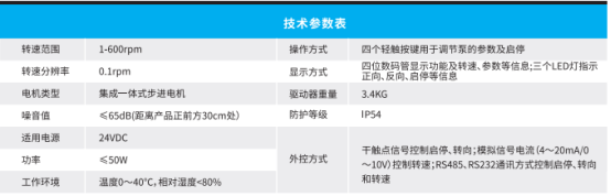 The LP100 series is a basic type of variable-speed peristaltic pump for laboratory basic applications, primarily used for material transfer under continuous conveyance. The speed is adjustable from 1 to 600 rpm. It features a compact size, low noise, smooth motor operation, and can achieve RS485, (4~20mA, 0~10V) analog signals, and various control methods.