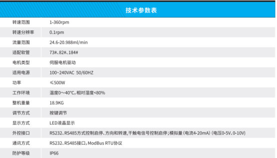 The TP600 series is a batch transfer peristaltic pump, featuring an aluminum alloy housing with a special coating for easy cleaning. It employs an AC servo motor and drive for high-speed accuracy, precise positioning, automatic torque adjustment, and strong power output, paired with a large-diameter, thick-walled flexible hose. Equipped with an external control interface, it offers multiple control methods and a flow display function, allowing for measurement and precise dosing. The TH35 pump head is a double-roller spring peristaltic pump, with a double-roller spring design that reduces shear force and extends the hose lifespan. The pump head is made of aluminum alloy with a special coating for easy pharmaceutical factory sterilization.