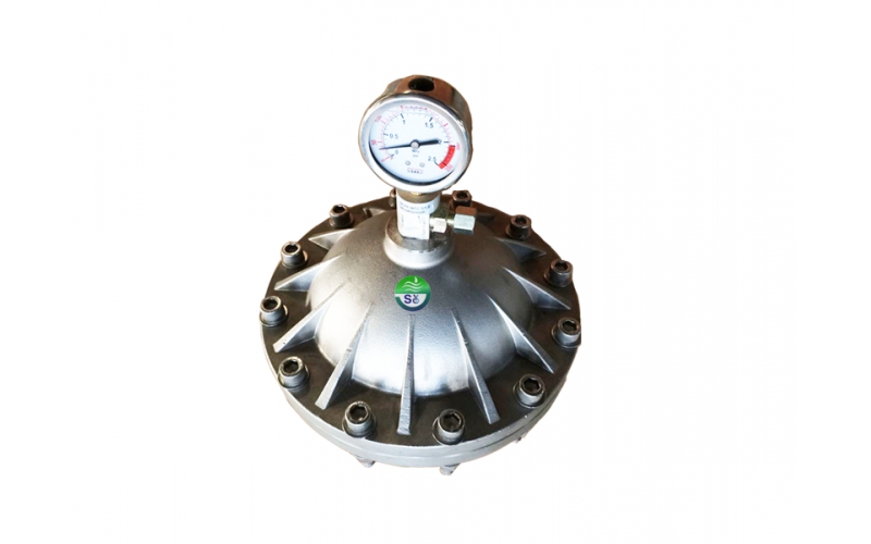 Pulse dampener equipped with a pressure gauge, indicating the working process