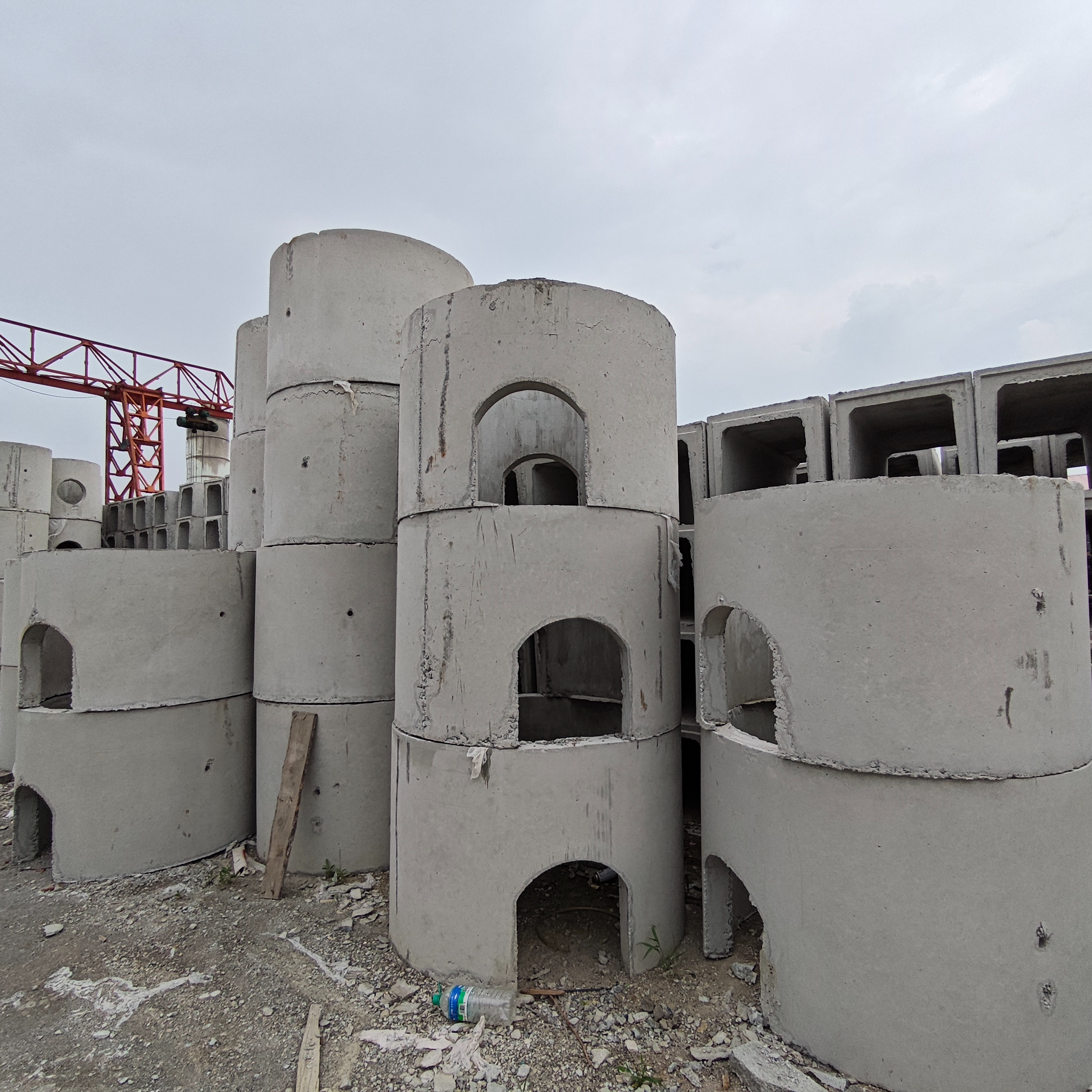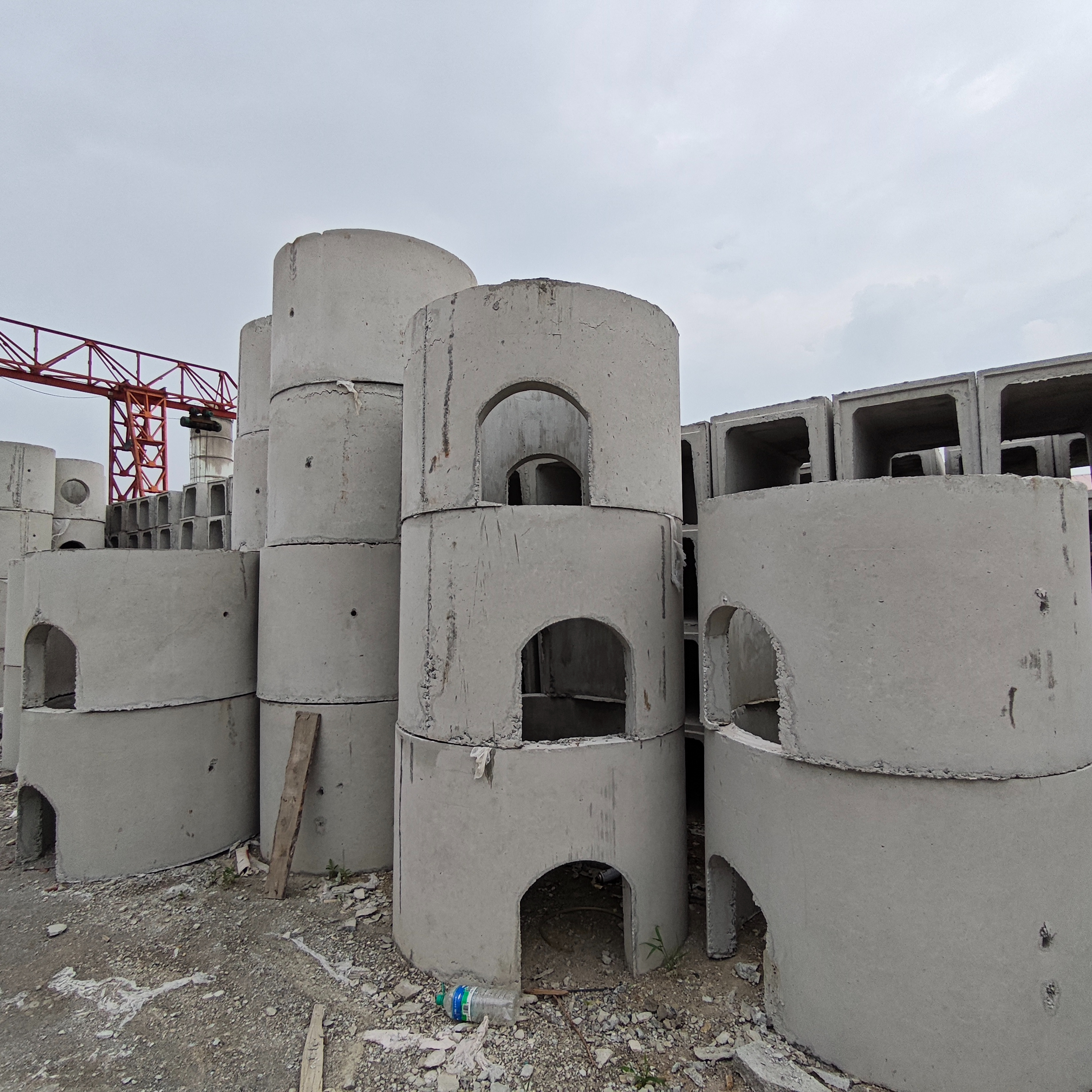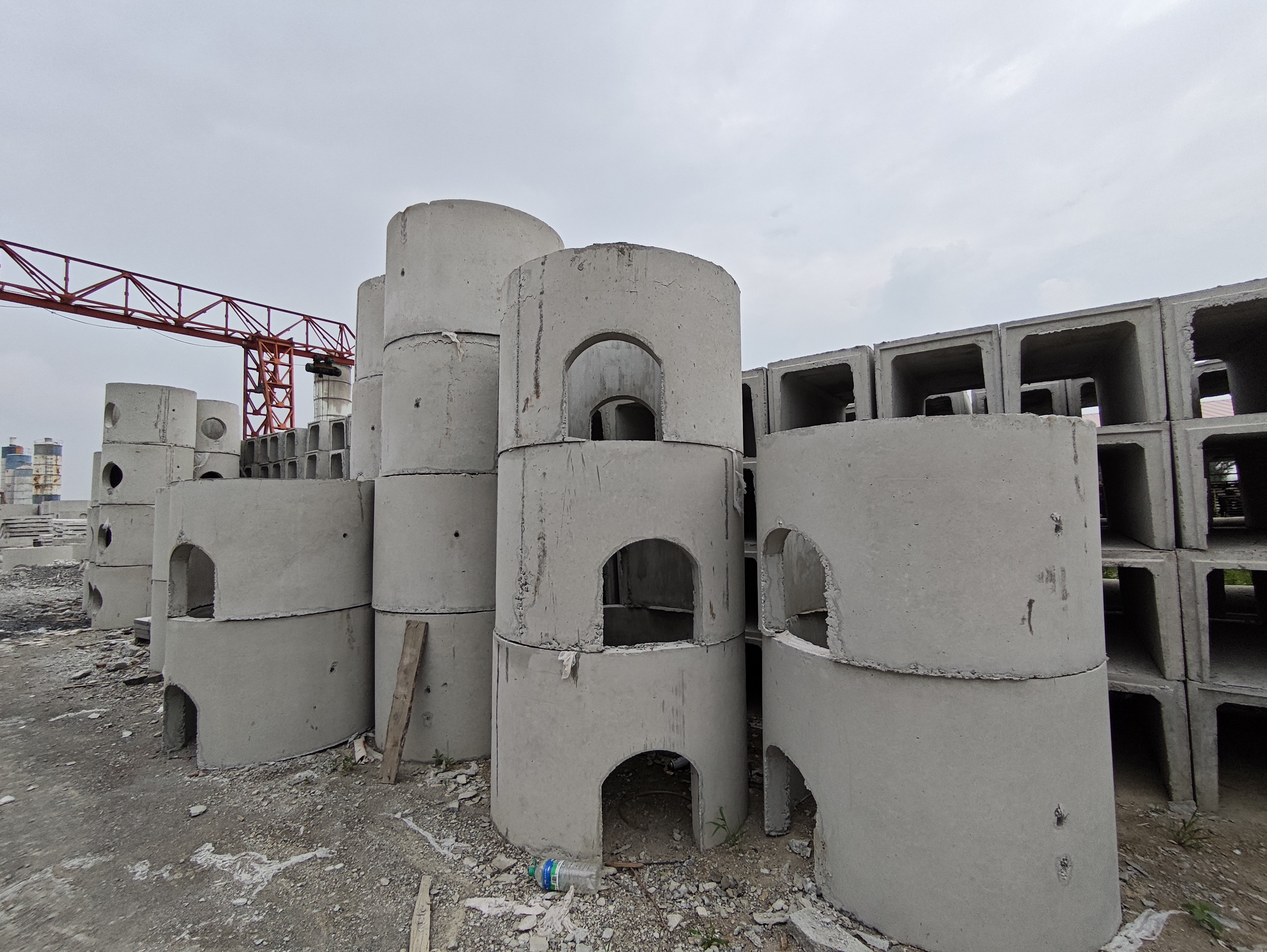 We currently have 3 well chamber production lines, 3 cement pipe production lines, and 2 brick machine production lines. This includes 7 gantry cranes, 4 automatic concrete mixing systems, and an annual production capacity of over 200,000 cubic meters of cement products, fully meeting production demands.