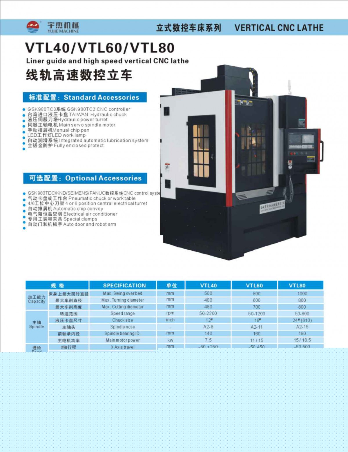 Yuzhoujie Machinery Manufacturing Co., Ltd. of YanchengPublished byLinear high-speed CNC vertical machine models VTL40/VTL60/VTL80Gallery Lib