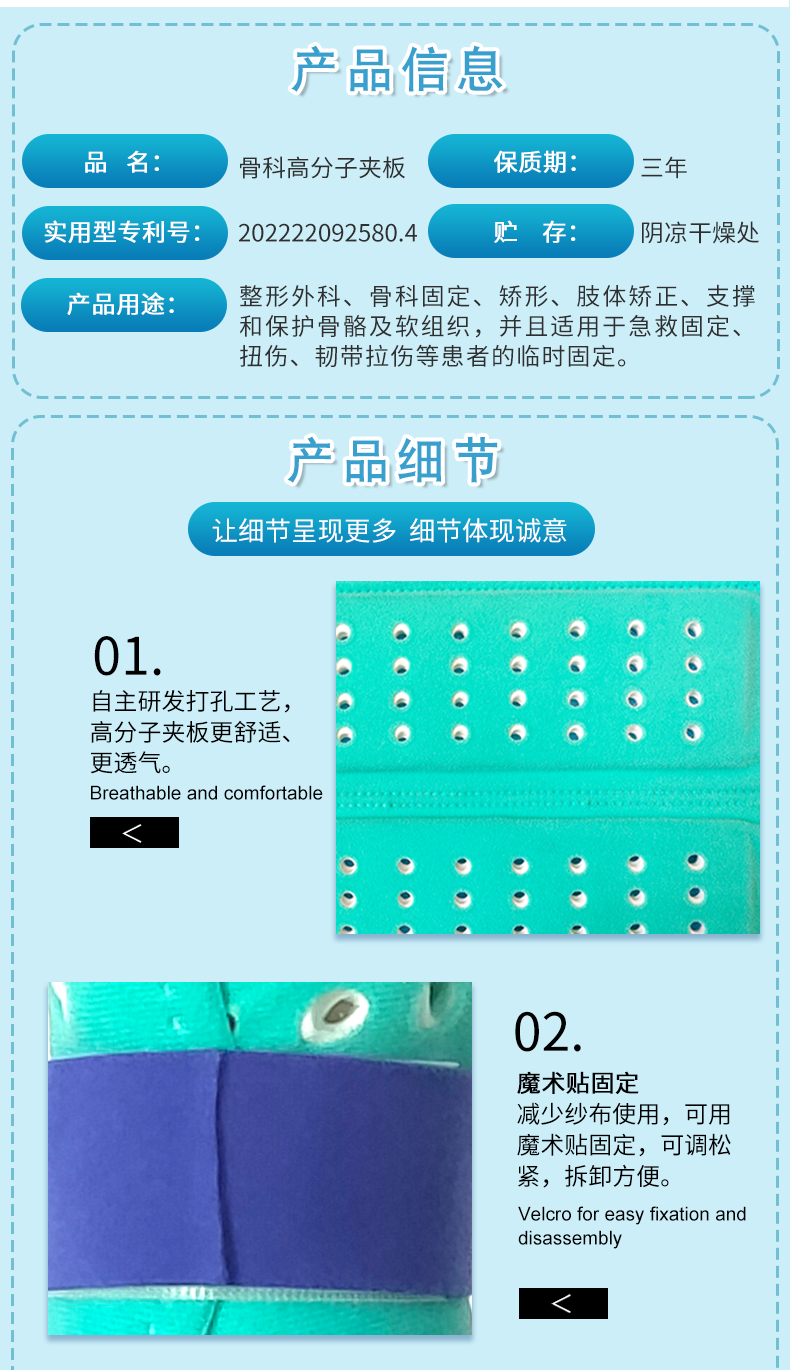 Taste High Polymer Laminates - Tubular Type, a novel externally fixed product with an independent patent. Made by impregnating glass fiber or polyester fiber with polyurethane adhesive, it achieves tubular fixation for orthopedic externally fixed high polymer laminates. The product design is more user-friendly, production management is stringent, and quality is constantly refined, creating an excellent brand for externally fixed products.