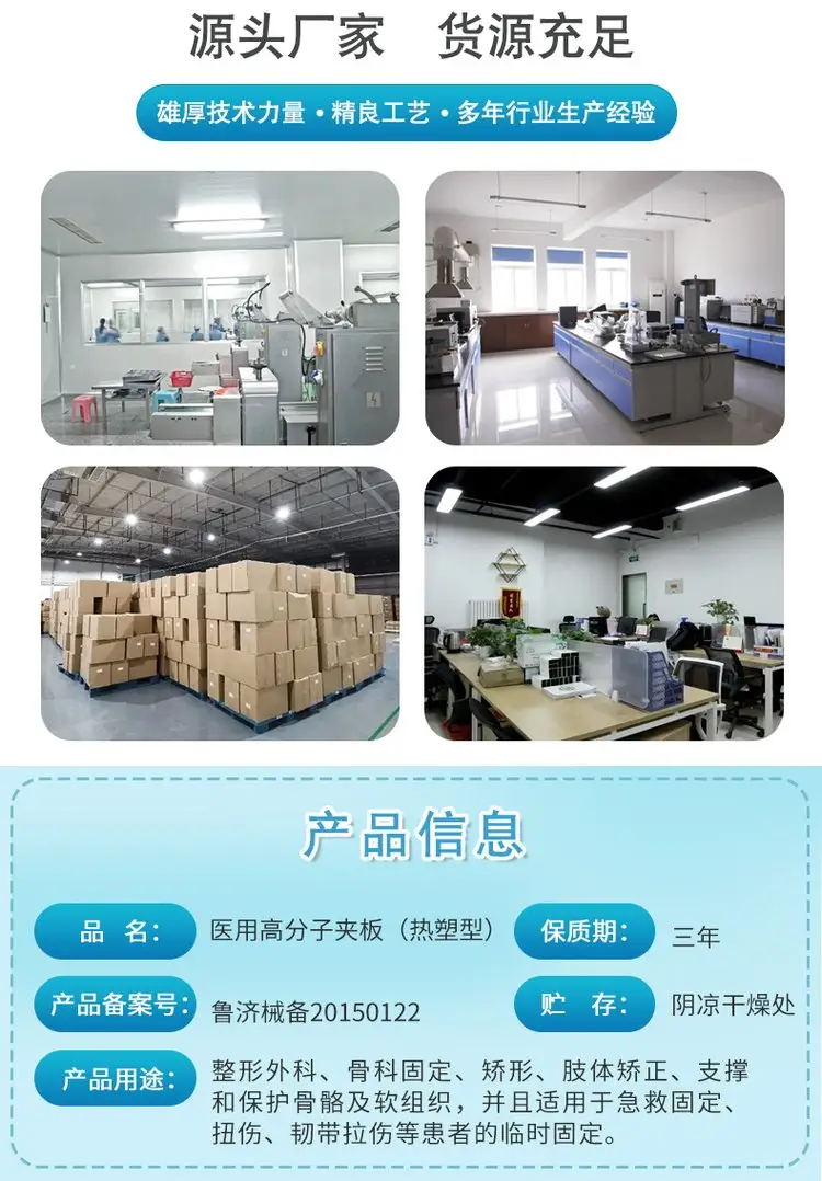 3. Re-moldable: The raw material used in the product is thermoplastic granules, which can be softened and re-molded above 70 degrees Celsius. Adjustments can be made at any time according to the patient's actual condition.