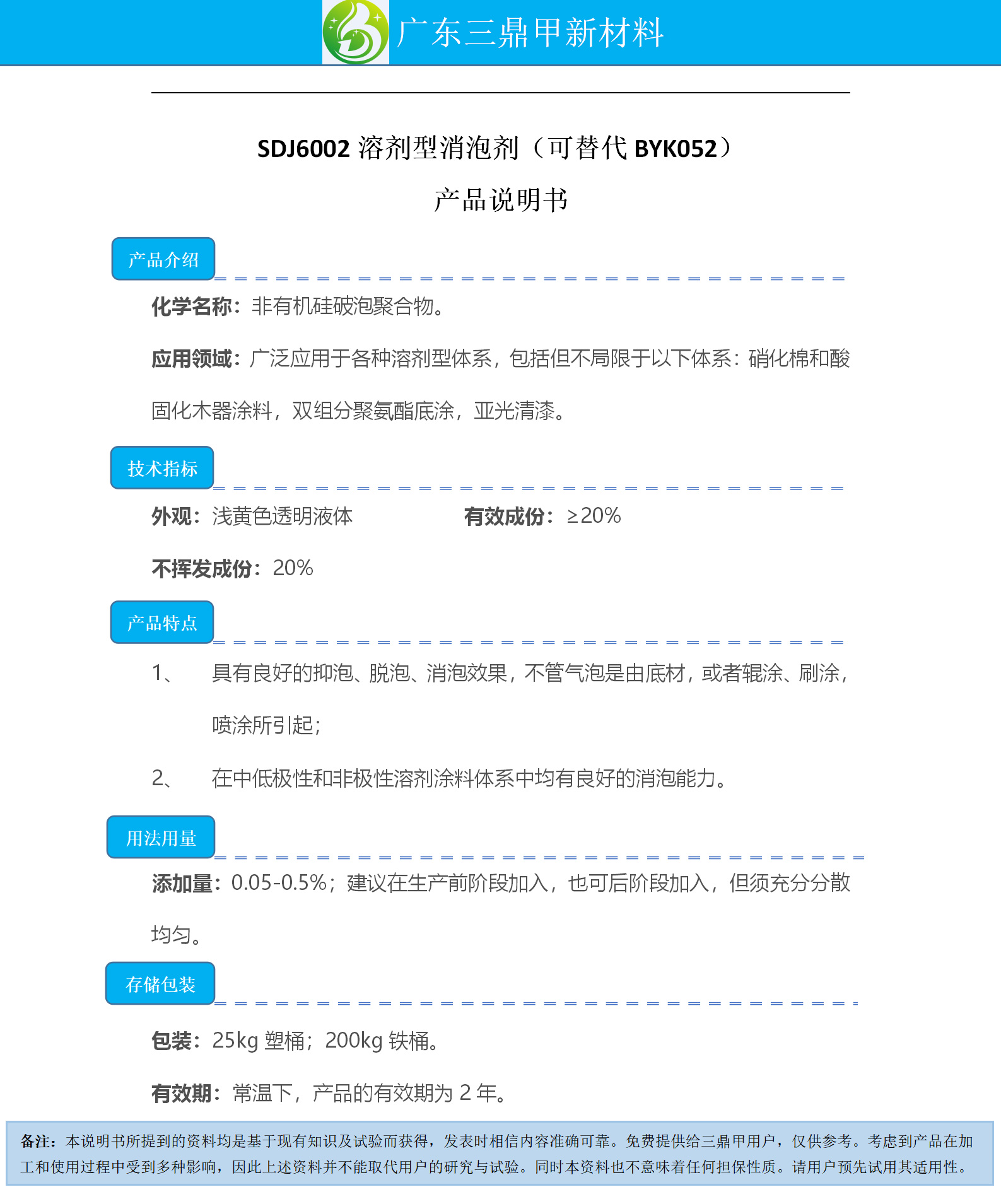 Guangdong San Ding Jia New Material Technology Co., Ltd.Published bySDJ6002 Solvent-based DefoamerGallery Lib