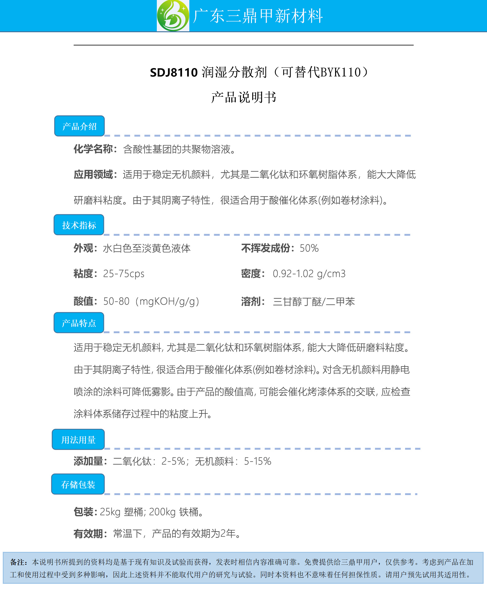 Guangdong San Ding Jia New Material Technology Co., Ltd.Published bySDJ8110 Wetting and Dispersing AgentGallery Lib