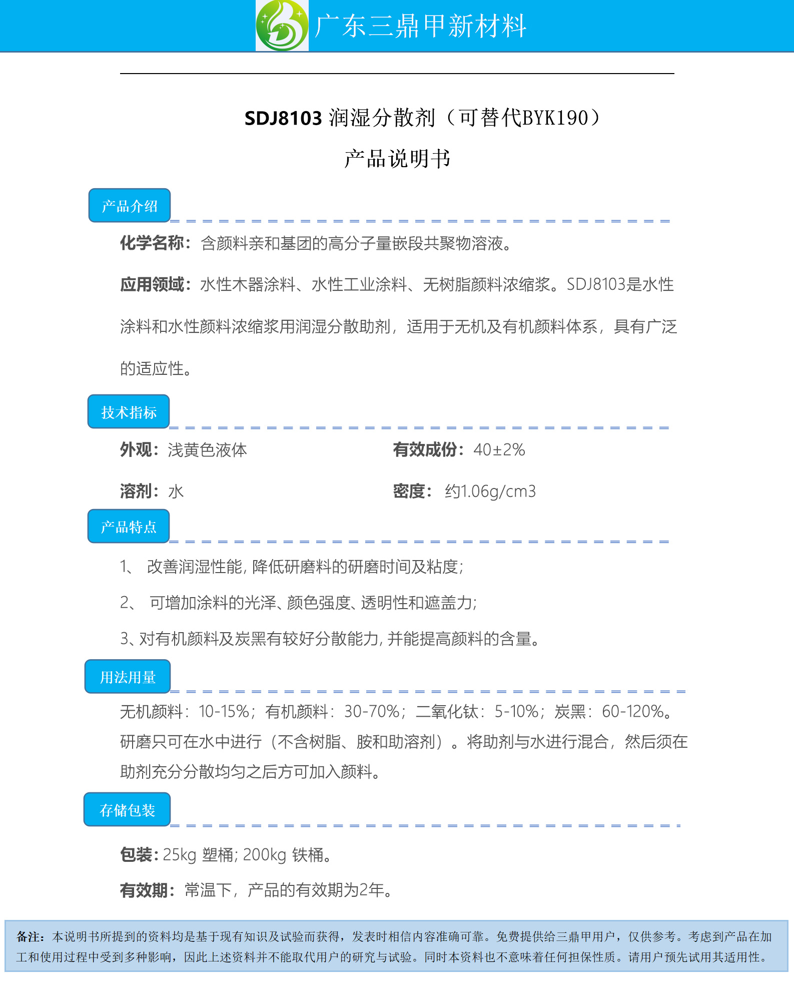 Guangdong San Ding Jia New Material Technology Co., Ltd.Published bySDJ8103 Wetting and Dispersing AgentGallery Lib