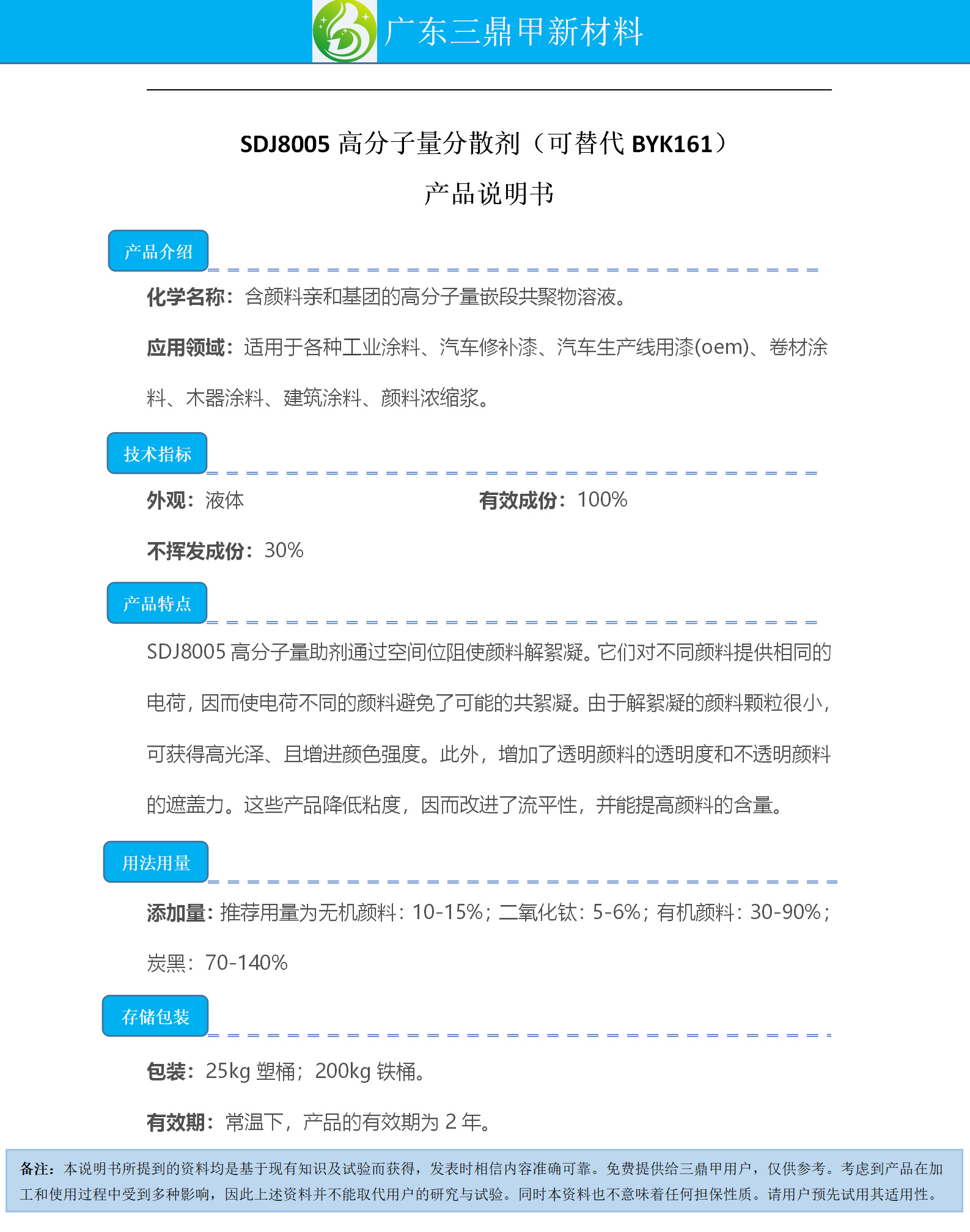 Guangdong San Ding Jia New Material Technology Co., Ltd.Published bySDJ8005 High Molecular Weight DispersantGallery Lib