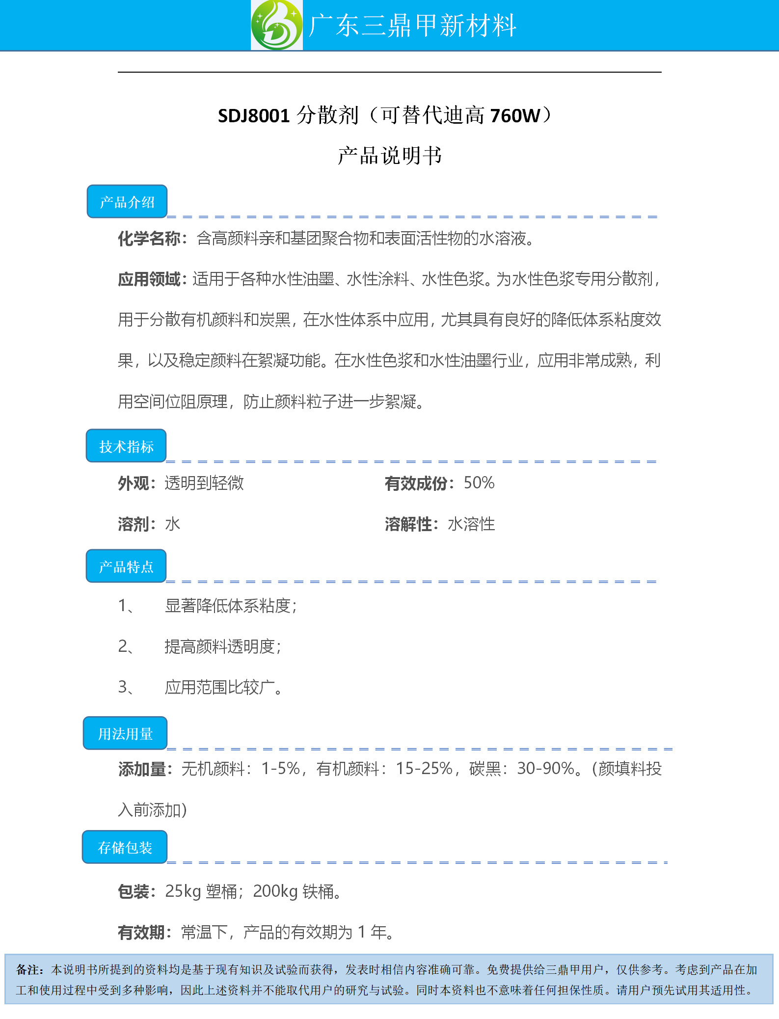 Guangdong San Ding Jia New Material Technology Co., Ltd.Published bySDJ8001 DispersantGallery Lib
