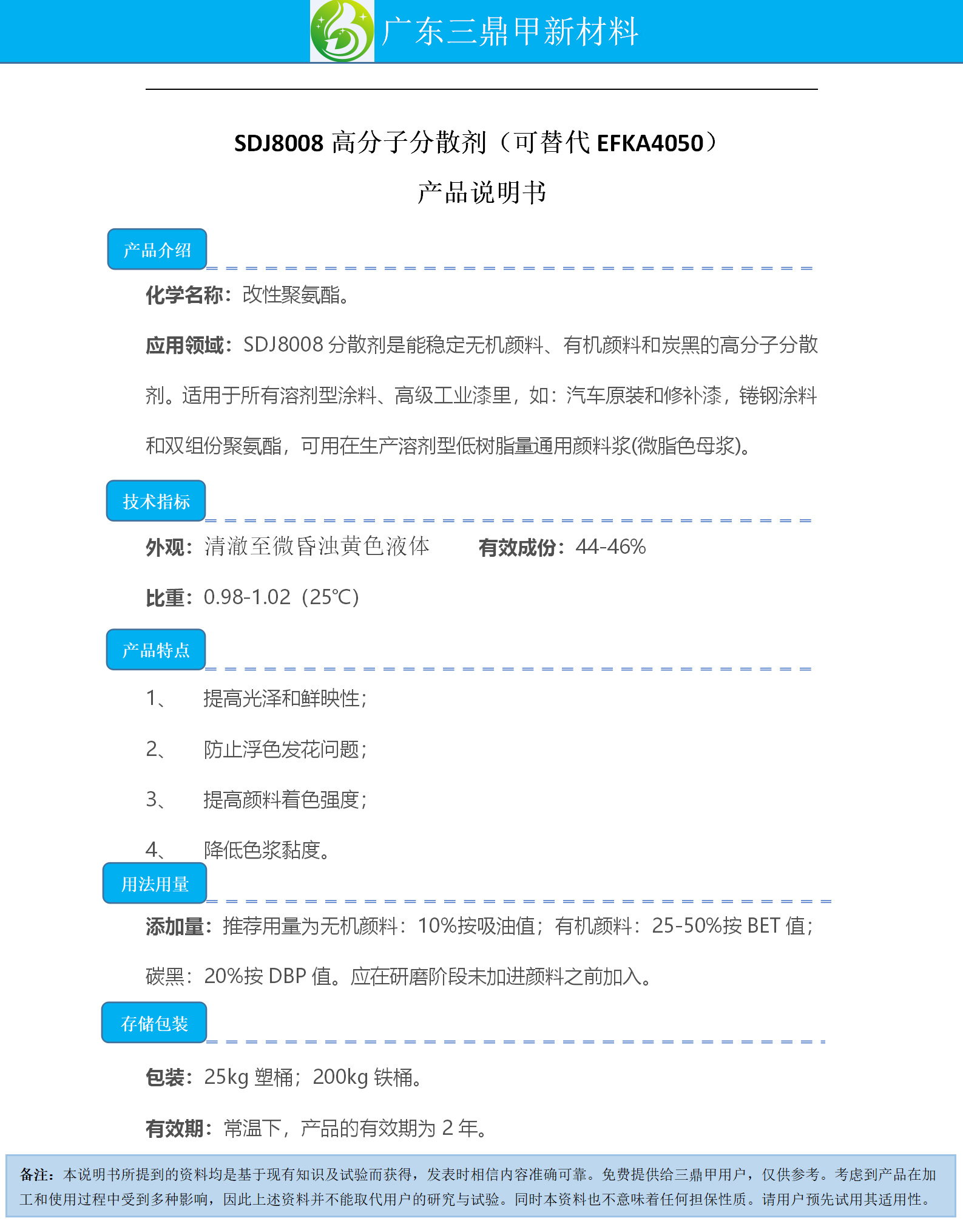 Guangdong San Ding Jia New Material Technology Co., Ltd.Published bySDJ8008 High Molecular Weight DispersantGallery Lib