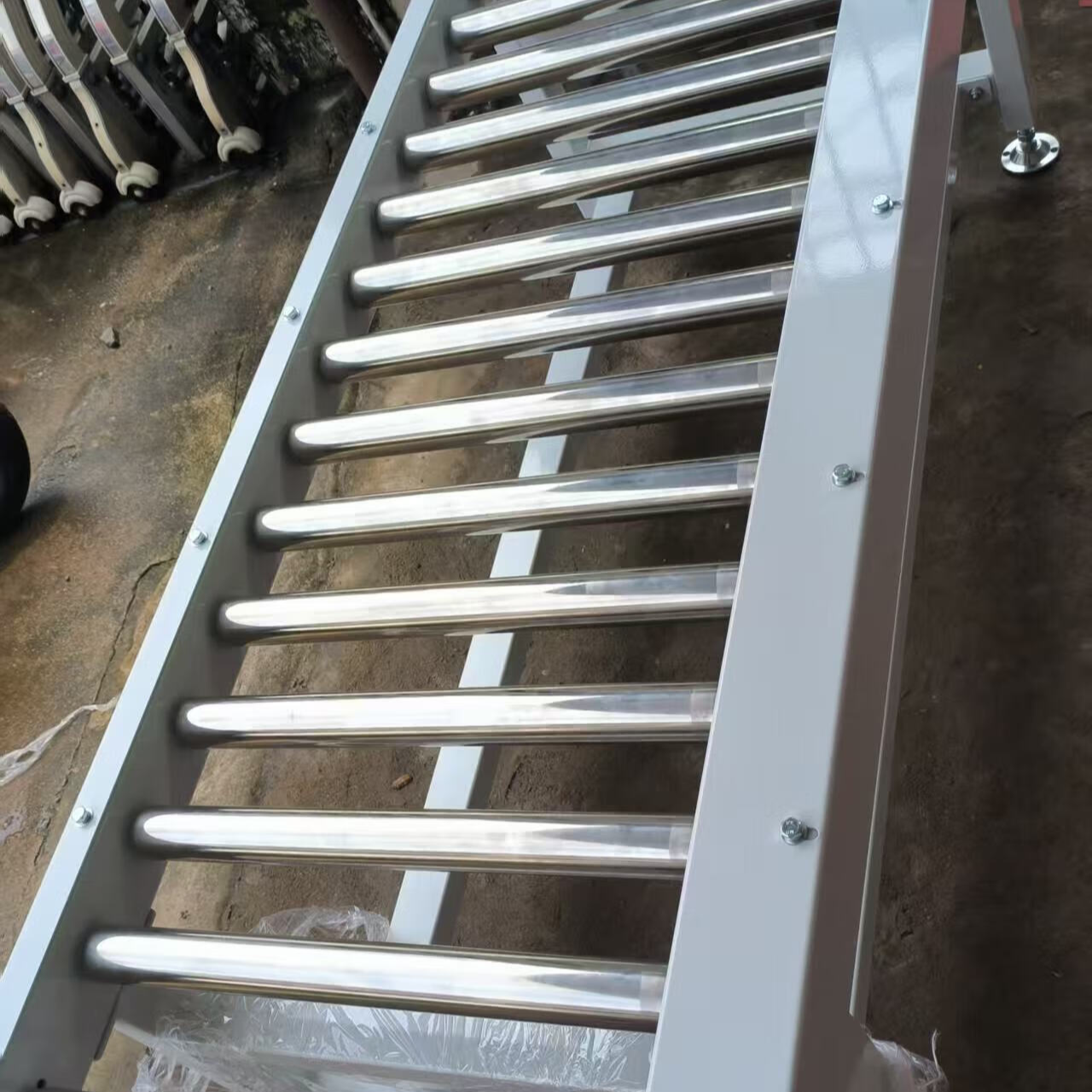 The material can be accumulated and conveyed using storage drums. The roller conveyor is structurally simple, highly reliable, and easy to use and maintain. It is suitable for conveying items with flat bottoms and consists mainly of driving drums, frames, supports, and the driving unit. It features large conveying capacity, high speed, smooth operation, and the ability to achieve concurrent and分流 conveyance of multiple types of goods on the same line.