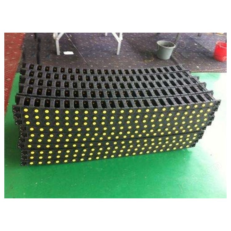(3) Each section of the chain link is composed of left and right chain plates, as well as top and bottom covers. Each section of the drag chain can be opened for easy assembly and disassembly, without the need for wiring. After the cover is opened, cables, oil pipes, gas pipes, water pipes, and other components can be inserted into the drag chain.