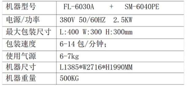 FL-6030A + SM-6040是针对单个物体或有纸托的物品而设计,此机可与生产线对接自动进料、裹膜、封切、收缩、冷却定型,实现无人化流水作业;感应式送膜,大大减少薄膜的损耗;原厂欧姆龙数显式温控器,温度精确,可直接看到封切时的温度状态;无级机械式调速装置,调整进料输送带的速度; 采用OMRON “PLC”可编程程序控制器,实现机、电、气一体化;采用特别设计的三片式封刀,封口线牢固、不开裂、不易粘刀; 进料输送带可根据需要设计成左侧进料或右侧进料的方式;可设计成有底托或无底托产品包装。