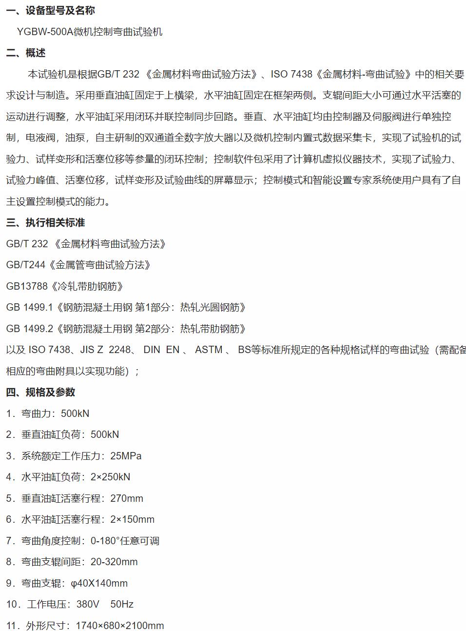 YGBW-500A Microcomputer-Controlled Bending Test Machine