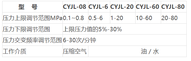 CYJL Type Pressure Transducer Alternating Aging Machine Selection Chart
