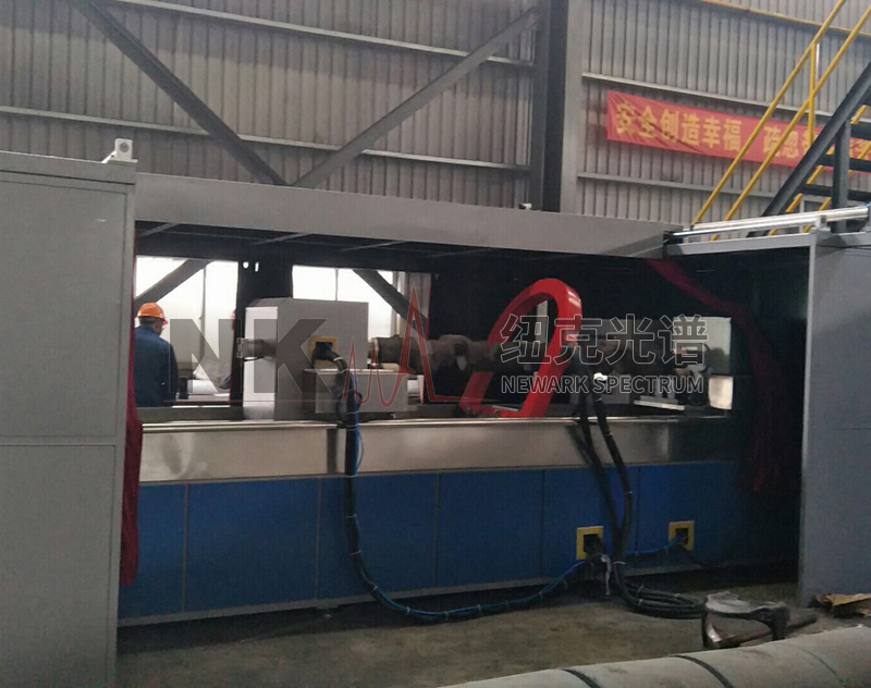 Composed of several major parts, including the tail frame movement mechanism, vertical magnetizing coil movement mechanism, clamping mechanism, rotating mechanism, magnetizing power supply and magnetizing unit, electrical control system, magnetic suspension liquid spray mixing and filtration recovery system, demagnetization system, fluorescent lamps, darkroom, and human-machine interface control system. Suitable for detecting surface and near-surface cracks and various minute defects in parts made of ferromagnetic materials, caused by casting, forging, processing, fatigue, and other reasons using the wet magnetic particle method.