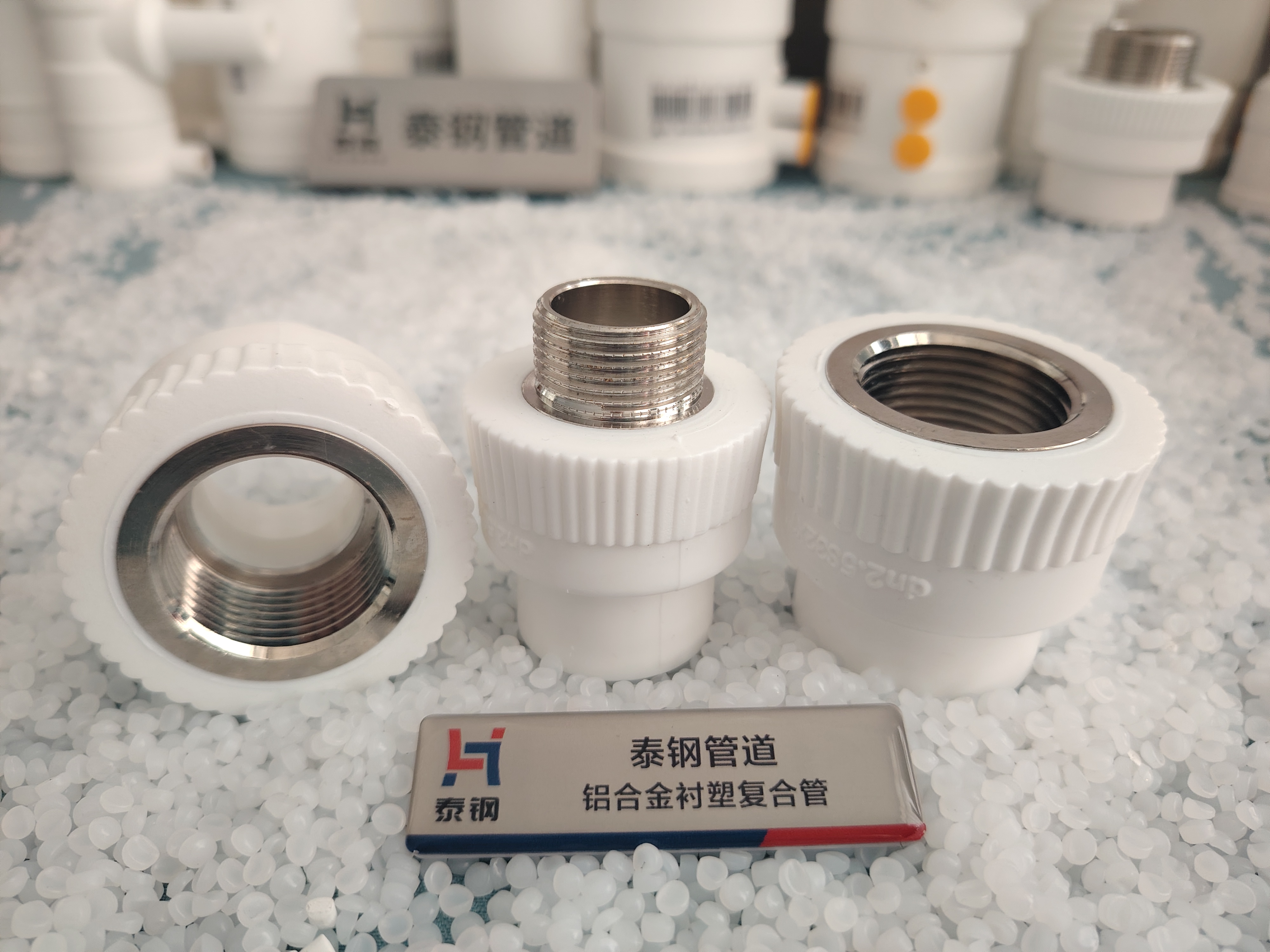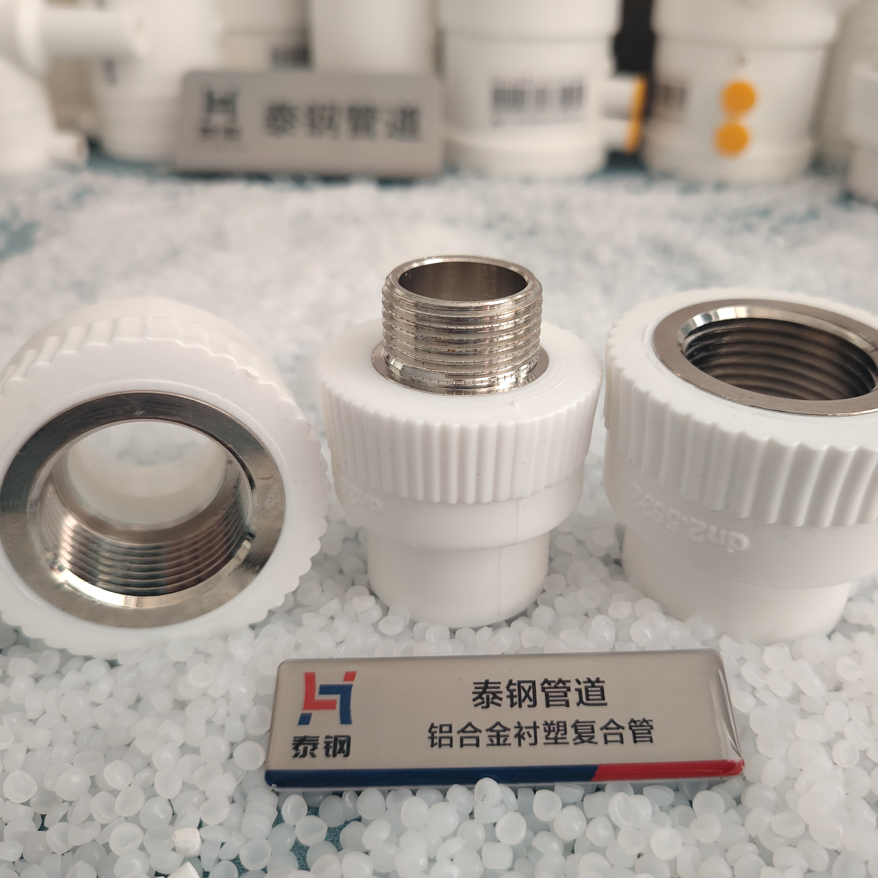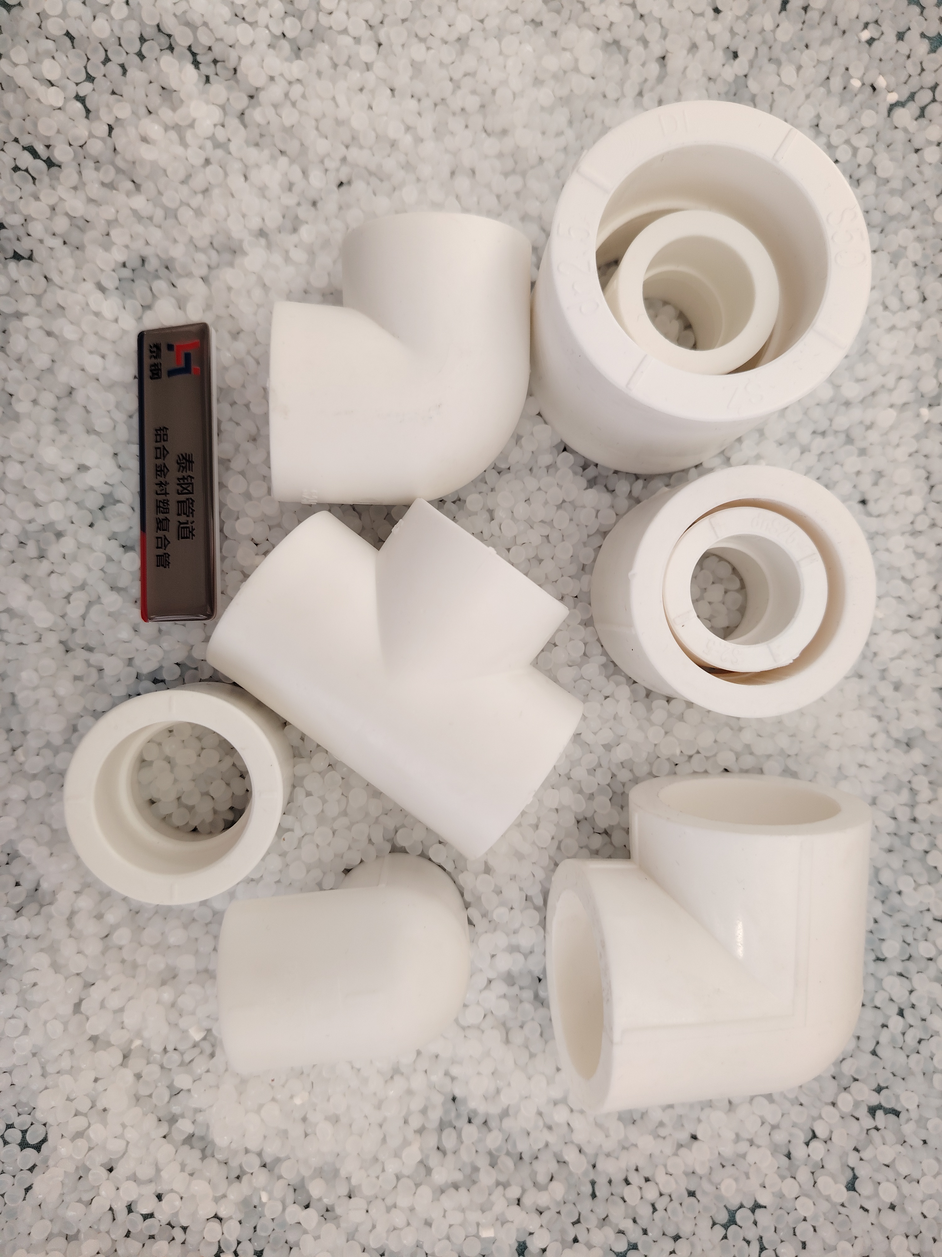 Aluminum alloy lined PVC composite pipe heat-fused fittings are made from the same raw materials as the pipe material, featuring a secure and reliable connection method: small diameter heat-fused socket and spigot joint.