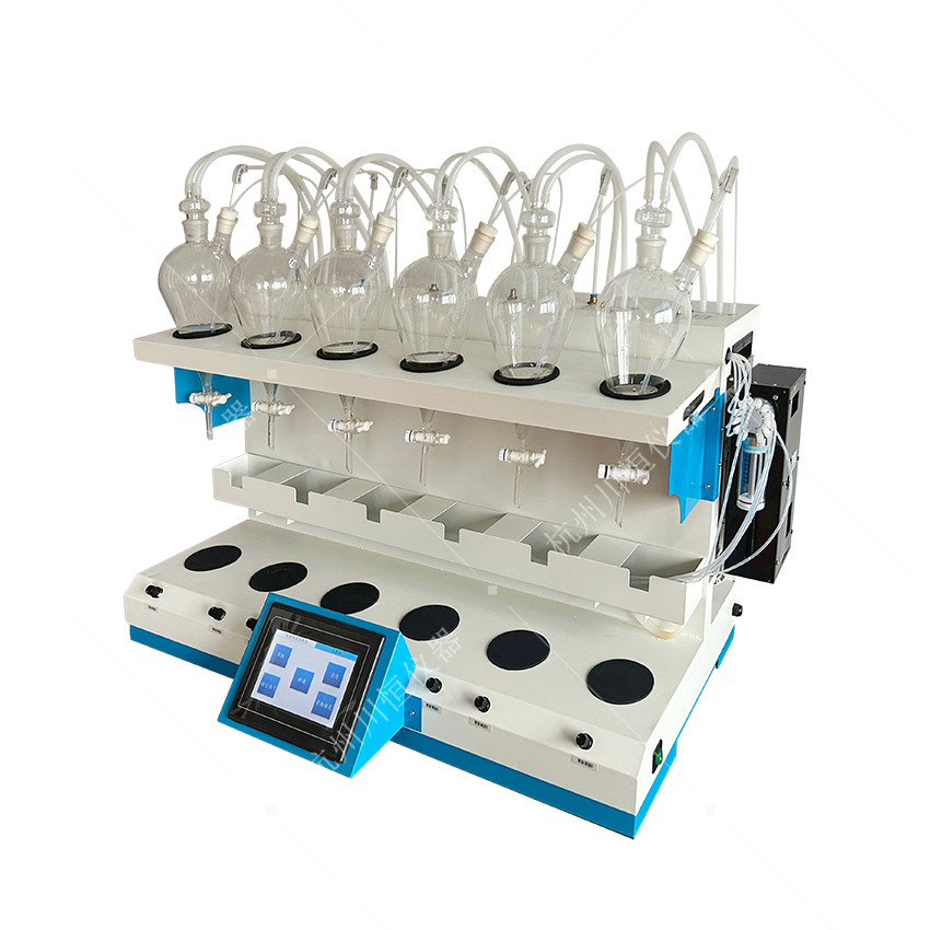 CH-CQ-6D Liquid-Liquid Extraction Apparatus, independently adjustable extraction rateThis equipment uses oscillation for extraction. It can simulate manual oscillation experiments, fully stir, mix, and oscillate liquids to ensure thorough combination of the target compound in the liquid with the extracting agent, thereby enhancing the extraction efficiency.