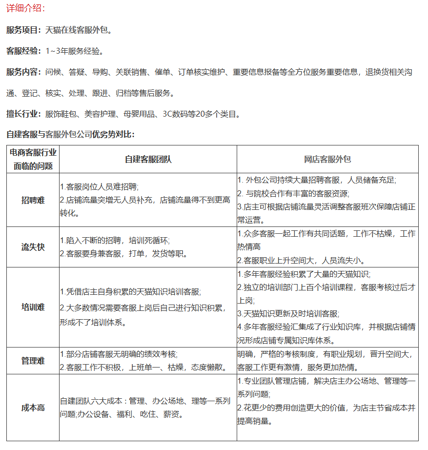 Tmall telephone customer service outsourcing