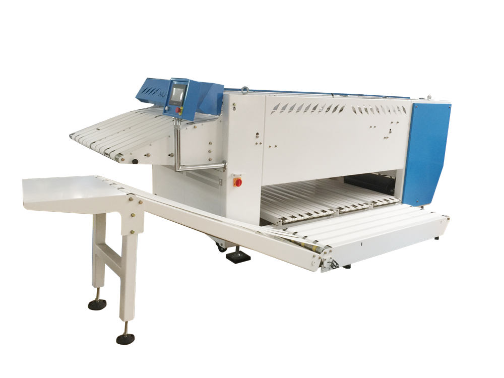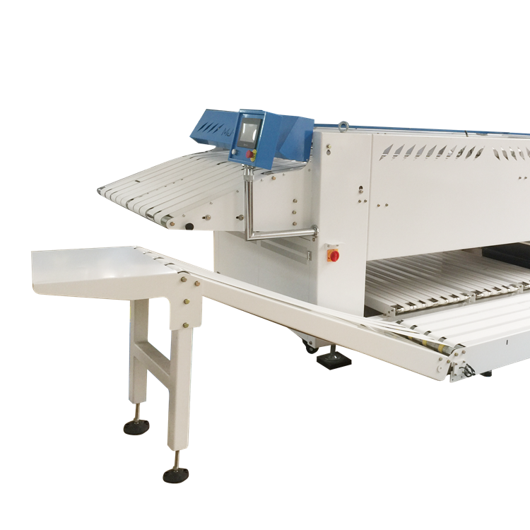 The automated equipment for towel folding developed by our company, with a towel folding speed of up to 50m / min, can fold 900 to 1200 towels, 4 folding times, and folding specifications of 1200 * 1800mm. The control system adopts touch screen computer for automatic control, and the man-machine interface transmits operating information, which can automatically reduce labor costs and increase labor productivity.