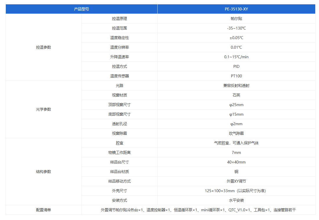 Supports compatibility with various microscopes (Leica, Olympus, Nikon, Zeiss, etc.), spectrometers (infrared, Raman, fluorescence spectrometers, etc.), and other optical instruments. Temperature control is available within the range of -35℃ to 130℃, enabling in-situ optical observation and related testing of samples under open, sealed, or vacuum conditions, with both reflective and transmissive capabilities. Equipped with an external XY adjustment device, it allows for positioning adjustments of the sample observation area without interrupting temperature control or opening the lid during the sample's temperature change observation.