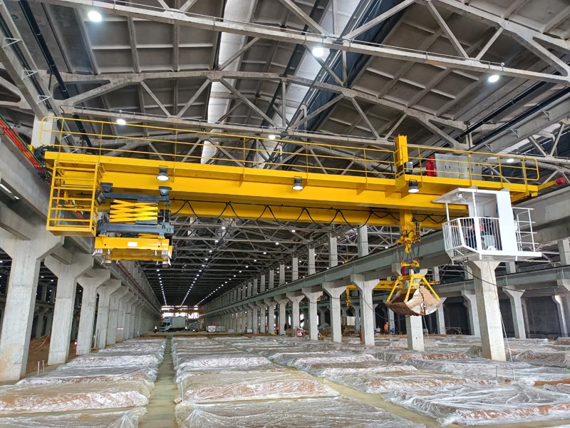 抓斗起重机是一种专门用于抓取放及搬运散装物料的起重设备,起重机的抓斗通常被设计成可以打开和闭合,以便夹取、搬运和倾倒散装物料,例如煤炭、矿石、土壤等。它们广泛应用于港口、码头、建筑工地、矿山等场所,用于装载和卸载船舶、搬运建筑材料、挖掘和运输矿石等作业。