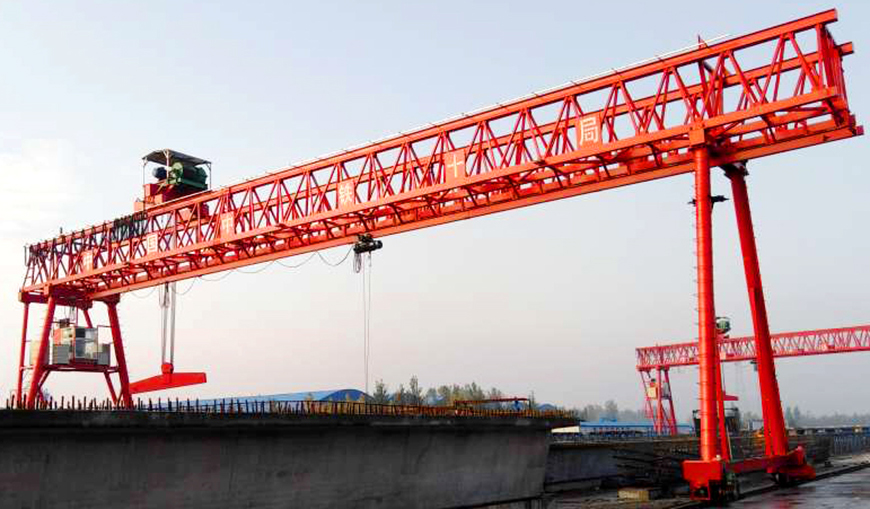 门式起重机是桥式起重机的一种变形,又叫龙门吊。它的金属结构像门形框架,承载主梁下安装两条支脚,可以直接在地面的轨道上行走。主梁两端可以具有外伸悬臂梁,根据实际使用要求可制成单端外伸悬臂式、双端外伸悬臂式或无悬臂式结构。