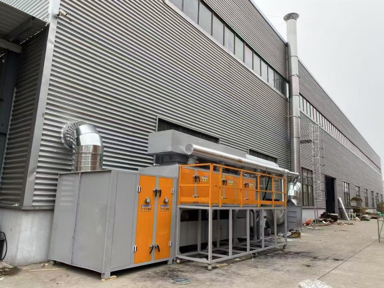 The catalytic combustion unit is primarily composed of a heat exchanger, combustion chamber, catalytic reactor, heat recovery system, and a chimney for discharging purified flue gas. Its purification principle is as follows: The unfiltered gas is preheated by the heat exchanger before entering the combustion chamber, where it reaches the required reaction temperature. The oxidation reaction takes place in the catalytic reactor. After purification, the flue gas releases some heat through the heat exchanger and is then discharged into the atmosphere through the chimney.