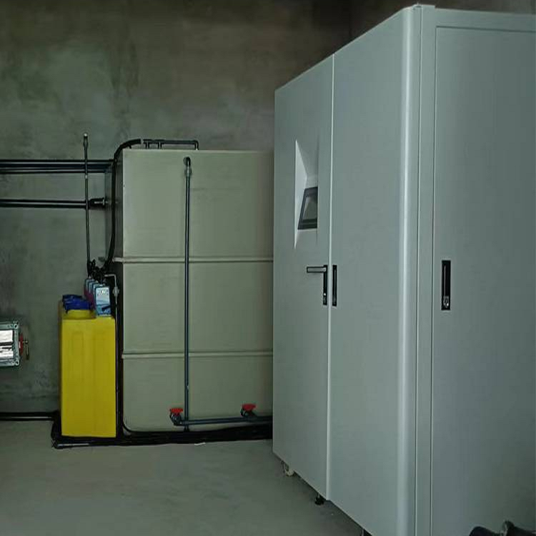 采用溶解法,自动缓释,压力加氯工艺设计,以含80%以上的CL固体药剂为主要原料,经水与药剂合理混合缓释所产生的消毒液,投入到所需水池(水井)与水充分接触杀菌消毒。
