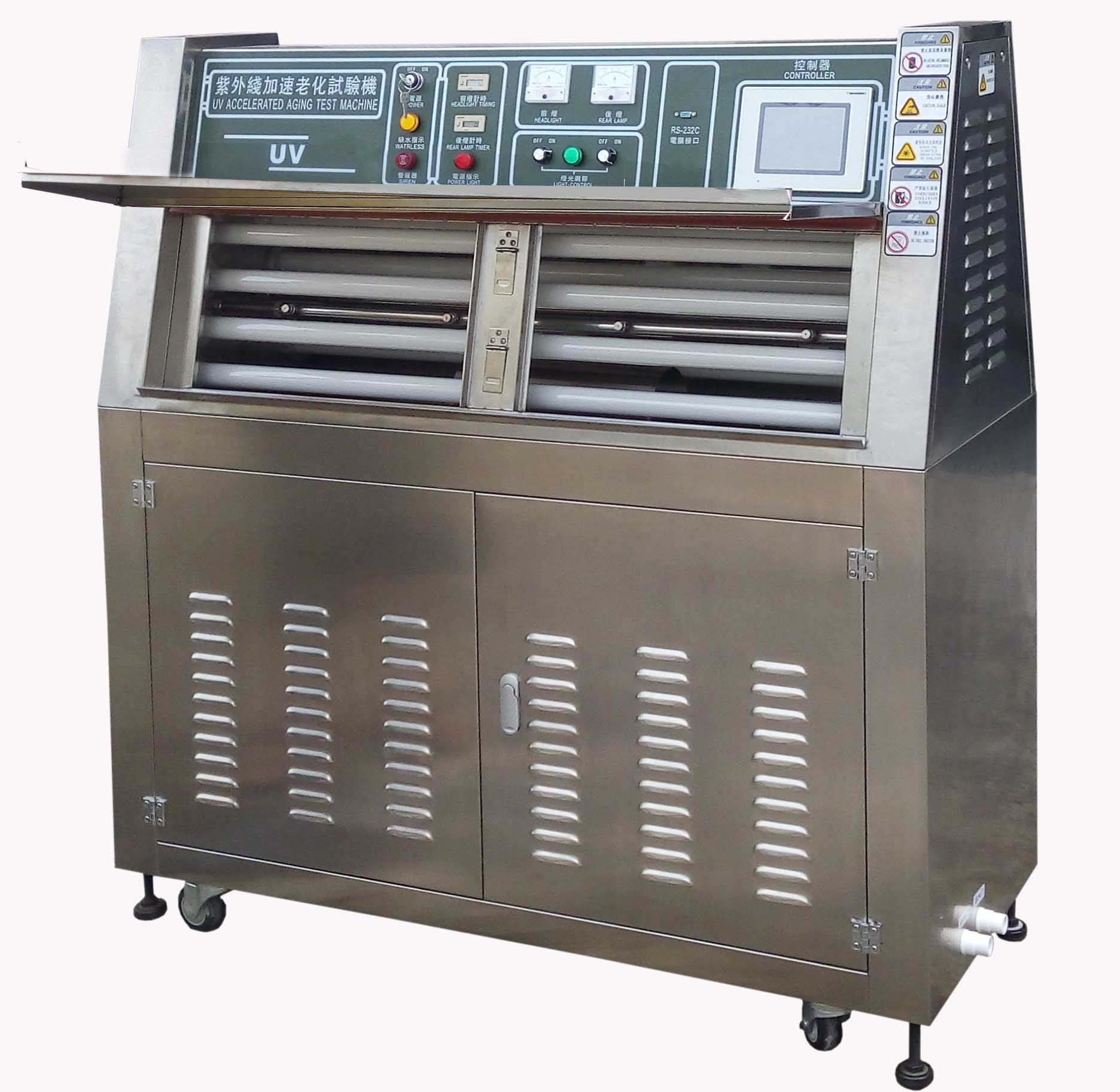 UV Aging Box Equipment featuring sun UV simulation, low cost of maintenance, ease of use, automatic operation with control, high degree of automation in testing cycles, good light stability, and high reproducibility of test results.