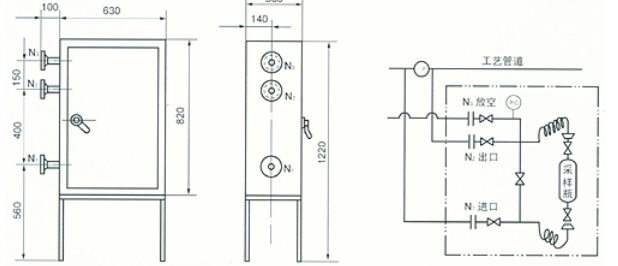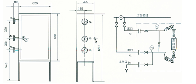 Note: N1, N2, N3 pipe openings are DN15 PN1.6-10.0. SCXM-IB type liquid enclosed sampler: ■Application Range: Suitable for sampling various liquid mediums such as toxic, harmful, flammable, and explosive. ■Technical Parameters: Sampling Temperature: -20~400°C, Design Pressure: 0~10.0Mpa, Sampling Volume: 100ml