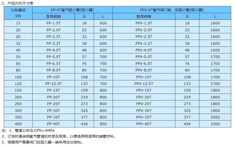 FPV-XT Type Oxygen Valve Front and Rear Flame Arrester Pipes