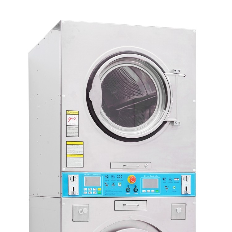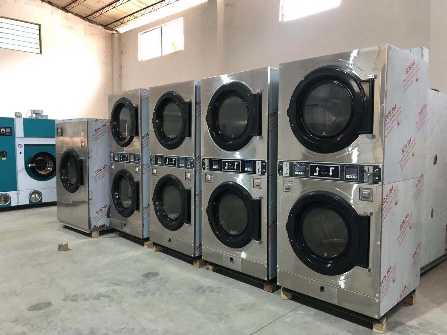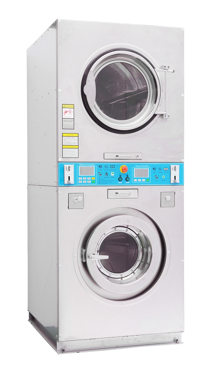 1.全自动上洗下烘一体机基于将水洗机、脱干机、烘干机有机整合,实现一机多用的基础上开发研制而成。具有洗涤、脱干、烘干三种功能。并且洗、脱和烘干可以同时进行。全自动双层洗脱烘一体机是由上下两部分组成,为国内首创的上下双层立式结构机型,可分体组合上都是烘干机,下部都是水洗脱干机。