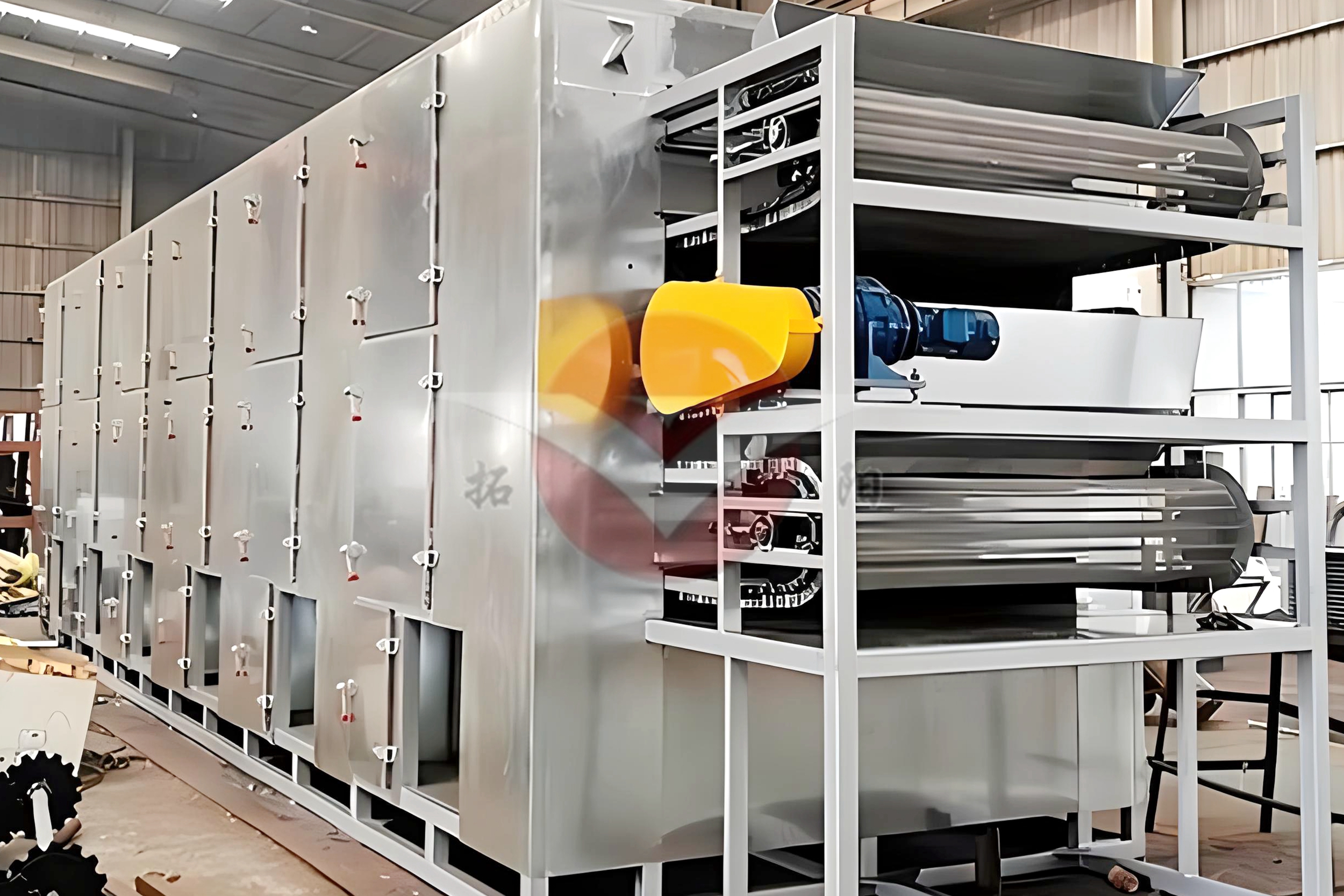 Belt Dryers (Belt Drying Machines) are commonly used continuous drying equipment, widely applicable in industries such as chemicals, food, pharmaceuticals, building materials, and electronics. They are particularly suitable for drying materials with good permeability, like sheets, strips, and granules. For filter cakes and pasty materials, they can be molded into shape using granulators or extruders before drying.