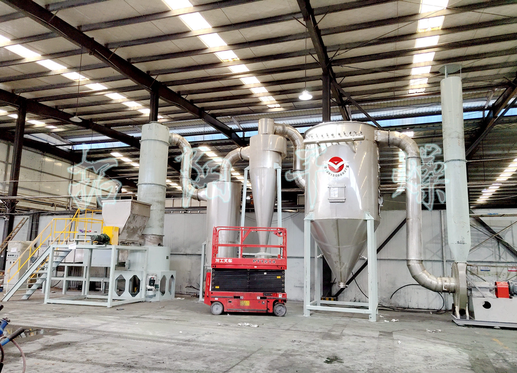 The dryer is equipped with a special cooling device at the bottom, preventing material from undergoing deterioration in the high-temperature zone at the base.