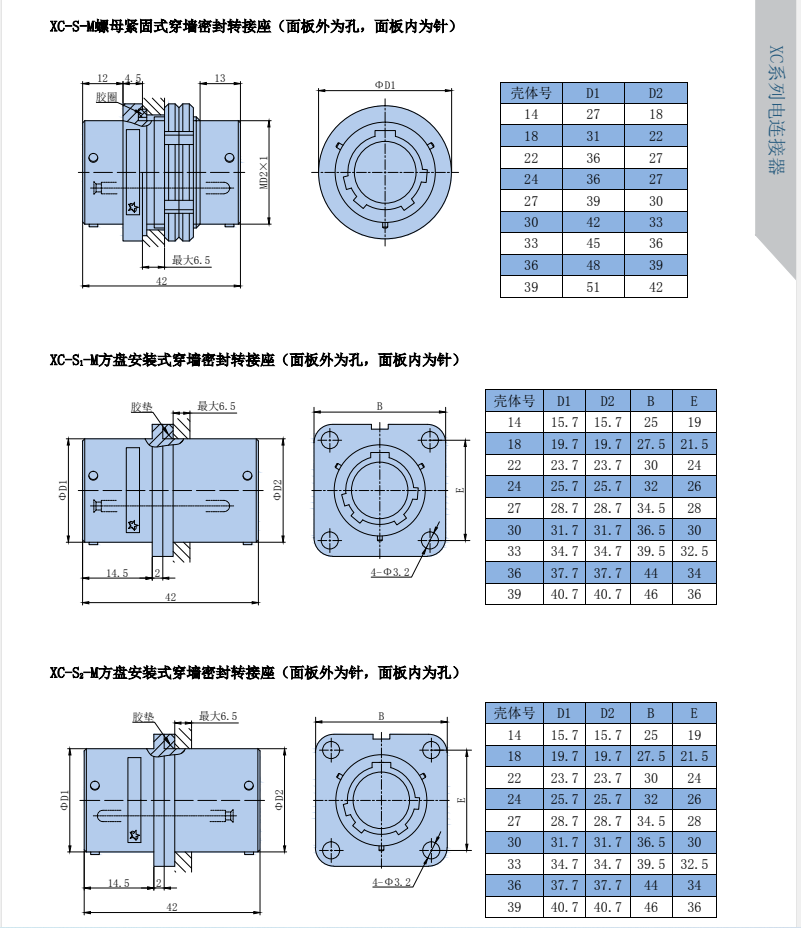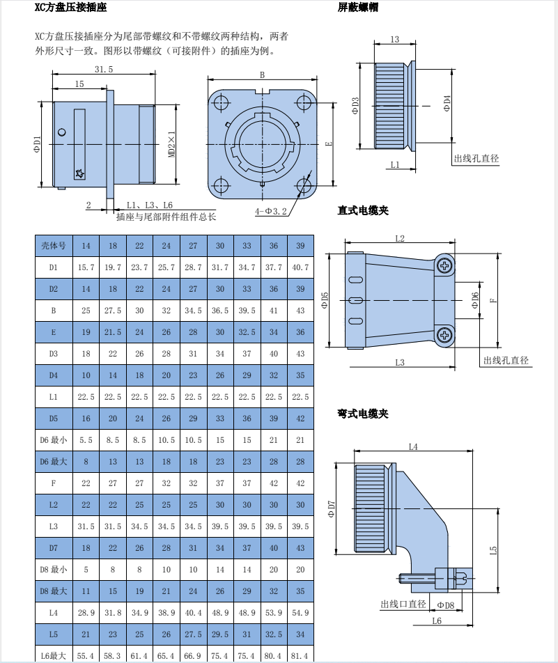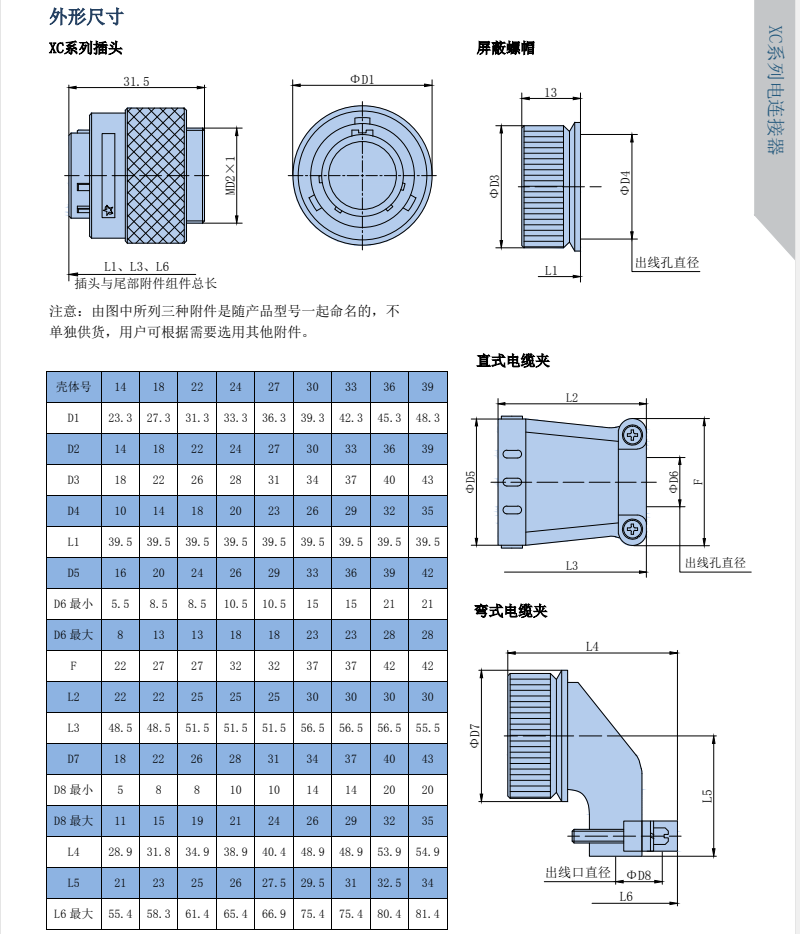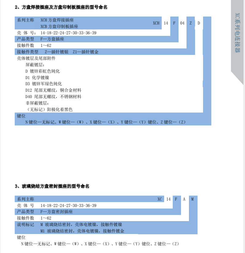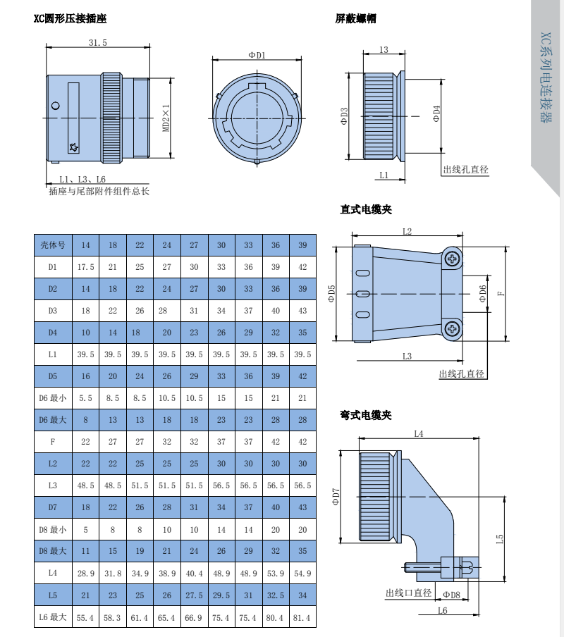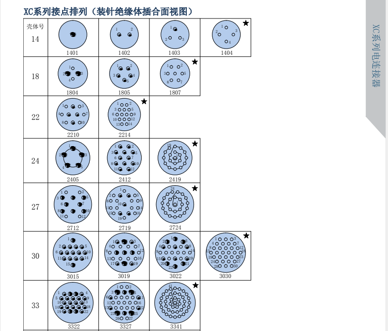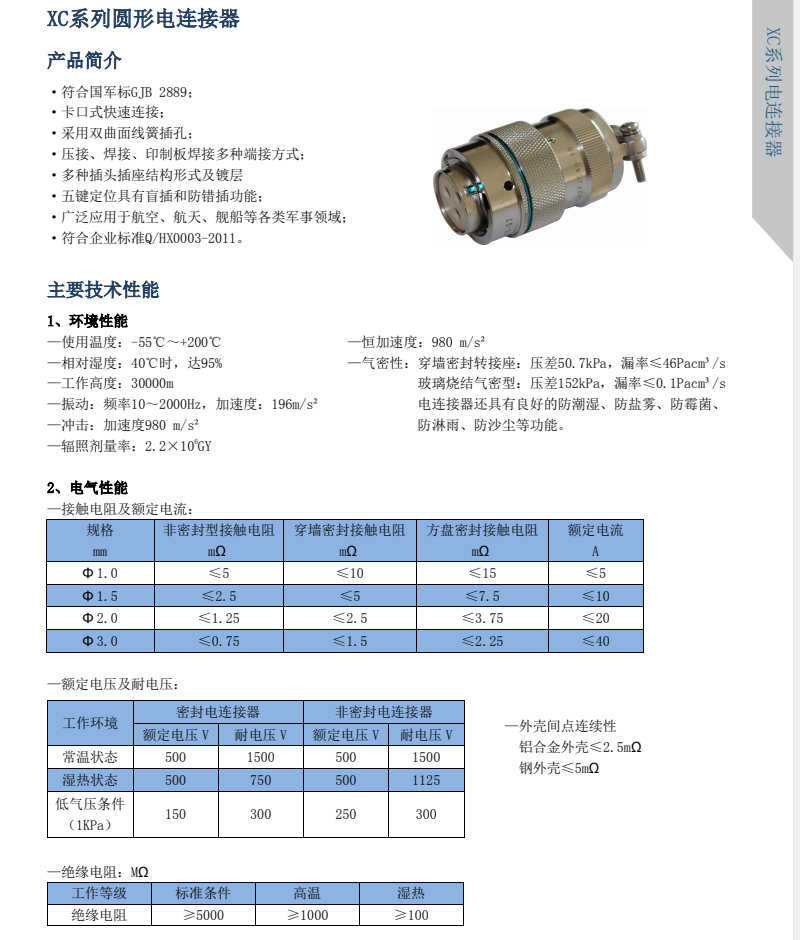 XC Series Circular Signal Connectors, compact design, high contact density, spring-loaded socket, low contact resistance, and smooth insertion/extraction. Available in both crimp and焊接 termination styles. The plug and socket feature a quick and convenient bayonet connection.