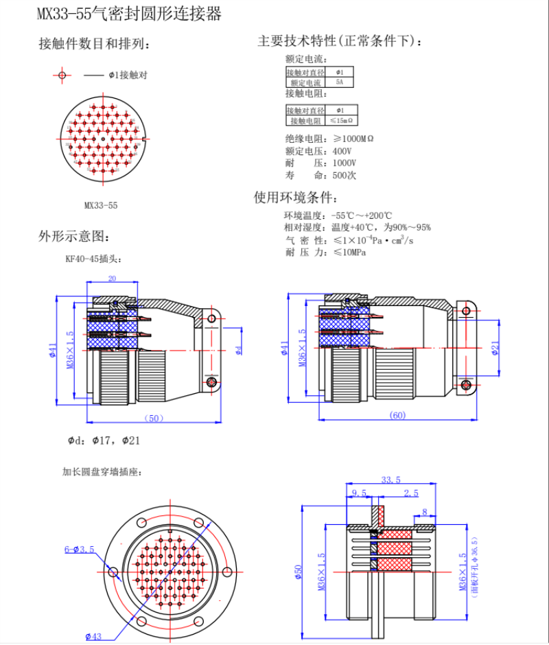 KF40-55ZJH Glass Sintered Seal Connector Receptacle