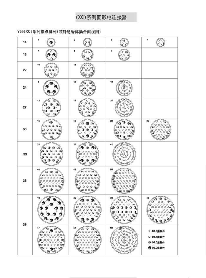 XC18T7K1P1 Signal TypeCircular aviation connectorSmall in size, with numerous cores, tightly arranged, high density; the socket is spring-loaded, featuring low contact resistance and smooth insertion/removal. Both the socket and plug are designed for both pin and socket mounting; it is recommended to install the socket on the live end to prevent any unforeseen incidents. Terminal types include soldering, crimping, and printed circuit board; with five key positions for blind insertion prevention and error-proofing functions. Widely used in aviation, aerospace communication, and ship radar fields.