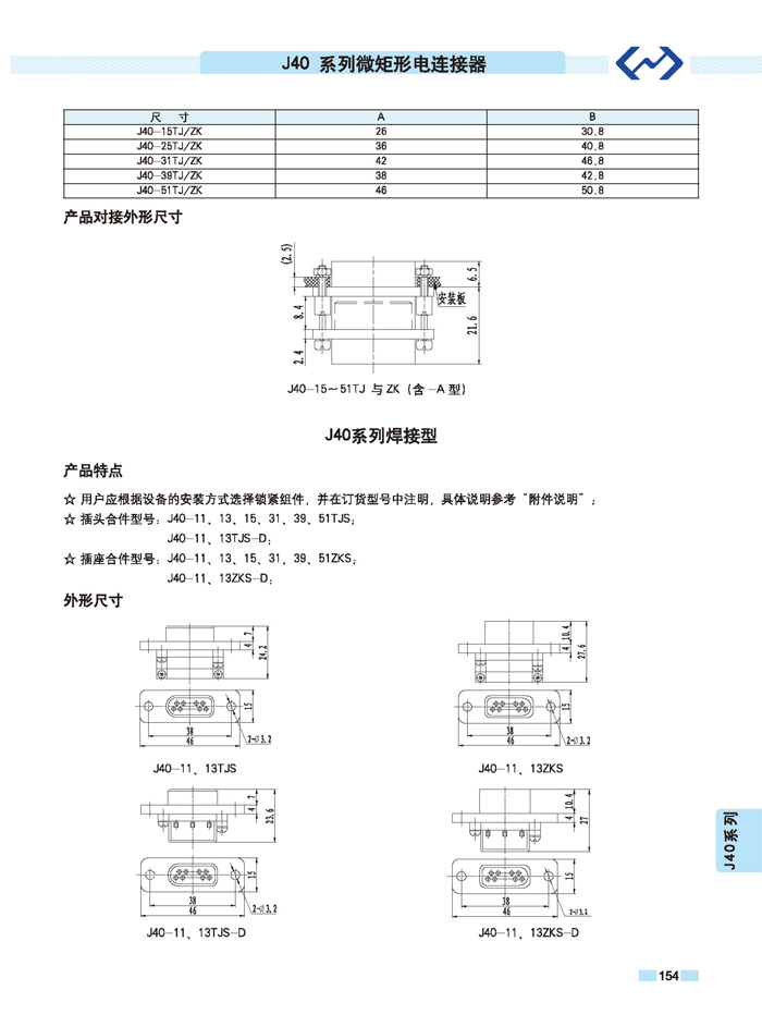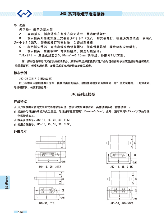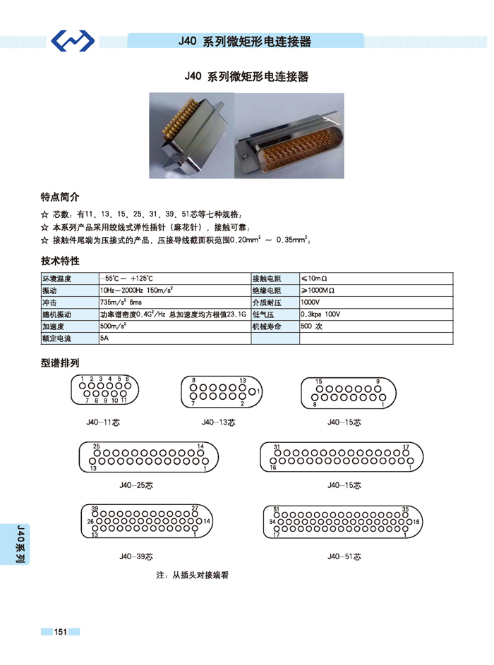 J40 Series Micro-Rectangular Aviation Connector, featuring twisted wire-type elastic pins (twisted pins), ensures reliable contact. It is an upgrade product for the J24H Series Aviation Connectors, with a wide range of wire cross-sectional areas, allowing for higher contact current. The connector back features a shielded wire clamp, securing the cable wire to the pins with stability and firmness.