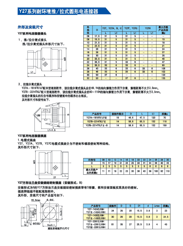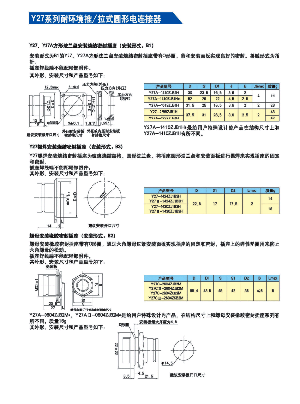 Y27B-2004ZKBM-B Stainless Steel Push-Pull Aviation Connector, made of stainless steel, corrosion and salt mist resistant, push-pull locking, 4-core contact, high current, rated current 50A. Available with square, round, and wall-through sockets. Color options include stainless steel passivation, anodized aluminum, and nickel-plated copper. Suitable for environments with limited installation space.