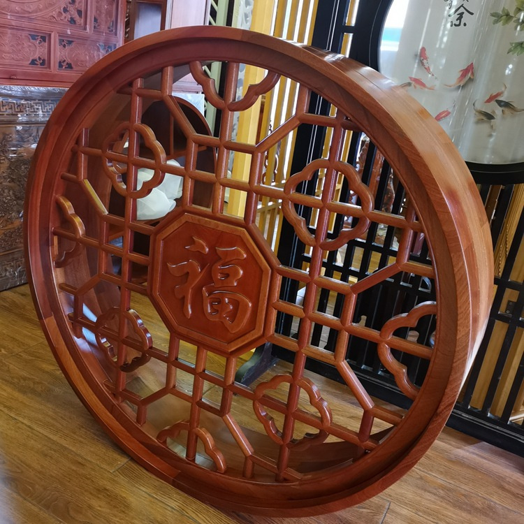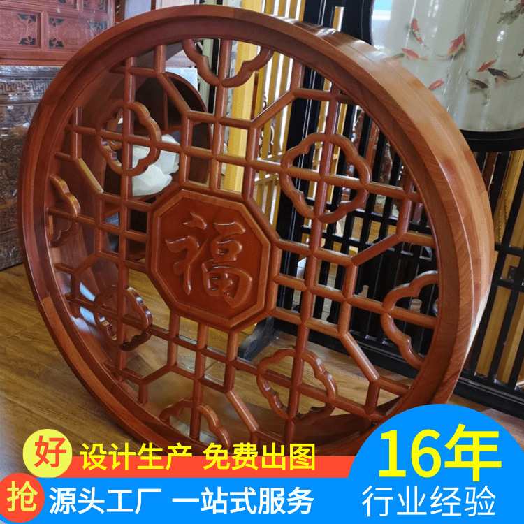 Dongyang Wood Carving Wall Decorations - Lijiao Wood Chinese Living Room Entrance Door Hanger, Circular Antiqued Ornament