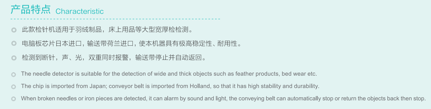 Shanghai Three Feathers Electrical Co., Ltd.Published byWide-width series 1200/2000/2400 automatic needle detecting conveyorsGallery Lib